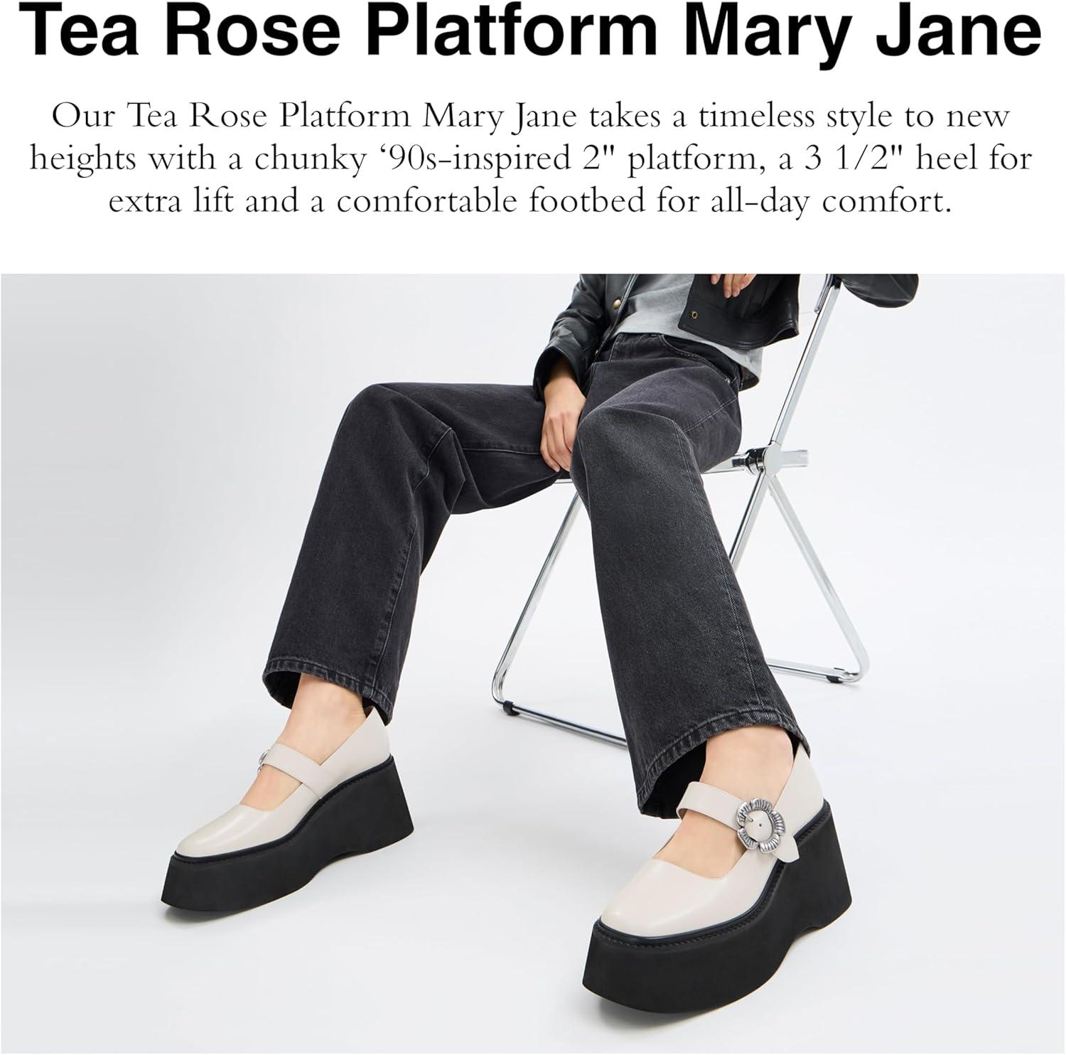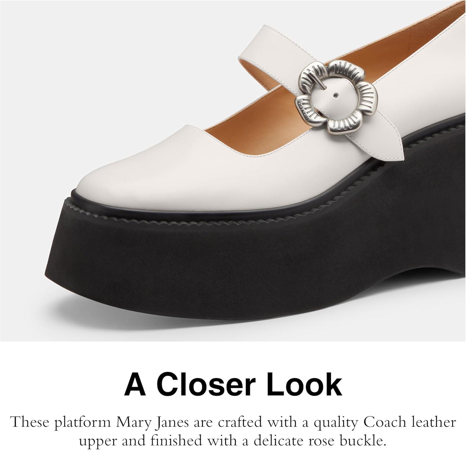Coach Women’s Tea Rose Platform Mary Jane Flats(Black)