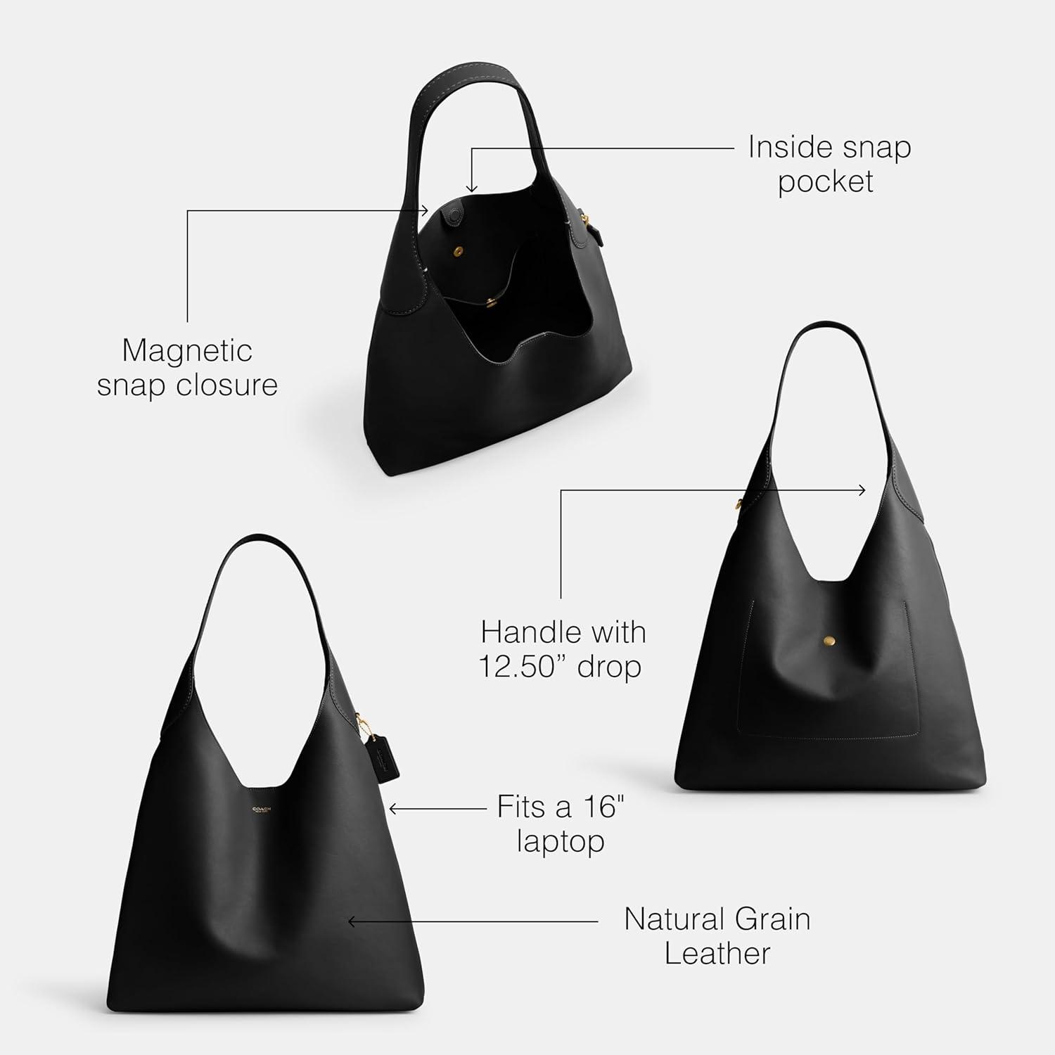 Our Brooklyn is an elegant, minimalist silhouette—with a distinctly New York attitude. Larger than the 28, this larger hobo bag for women is crafted of natural grain leather with beautiful texture and soft feel. Featuring a spacious interior with a snap pocket for access to essentials, the 39 has a comfortable, wide shoulder strap and an easy magnetic snap closure. Fits a 15″ laptop