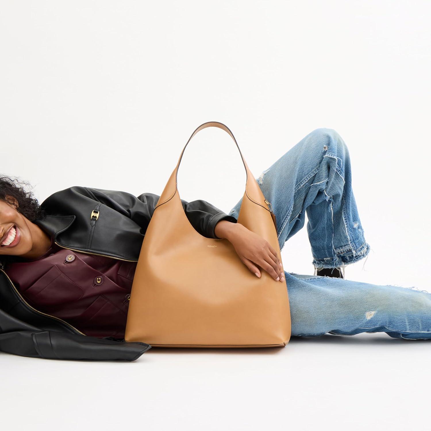 Our Brooklyn is an elegant, minimalist silhouette—with a distinctly New York attitude. Larger than the 28, this larger hobo bag for women is crafted of natural grain leather with beautiful texture and soft feel. Featuring a spacious interior with a snap pocket for access to essentials, the 39 has a comfortable, wide shoulder strap and an easy magnetic snap closure. Fits a 15″ laptop