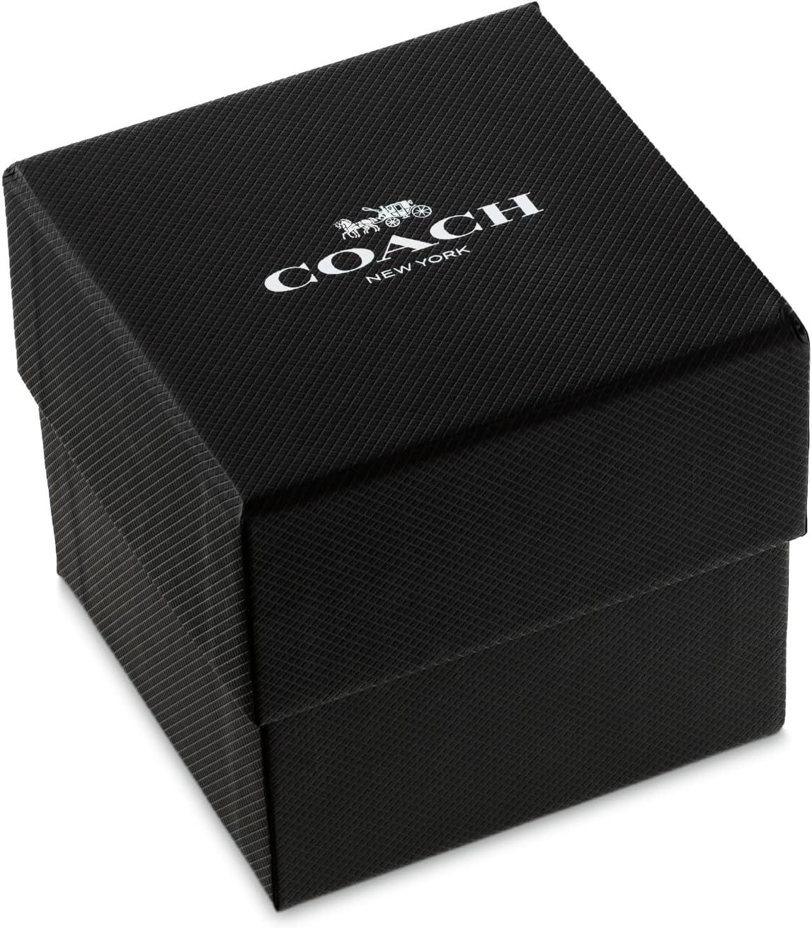Elliot is a modern classic with clean lines, featuring a black IP case, black Coach Signature dial with rainbow lume markers, and a black leather strap—ideal for both work and weekends.