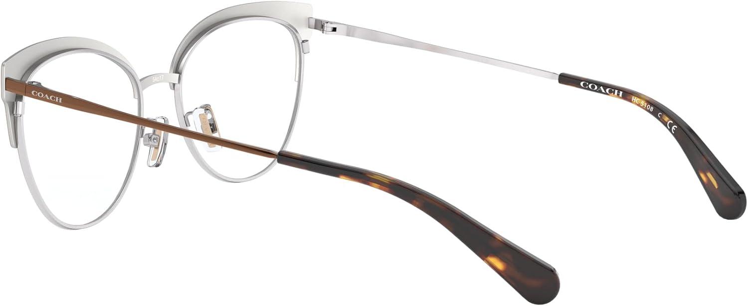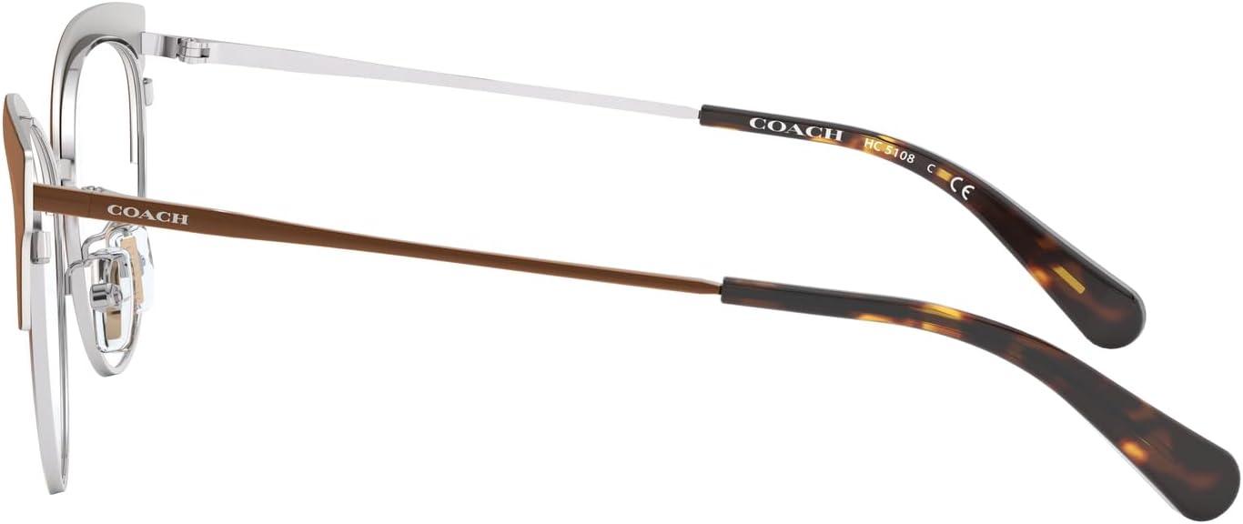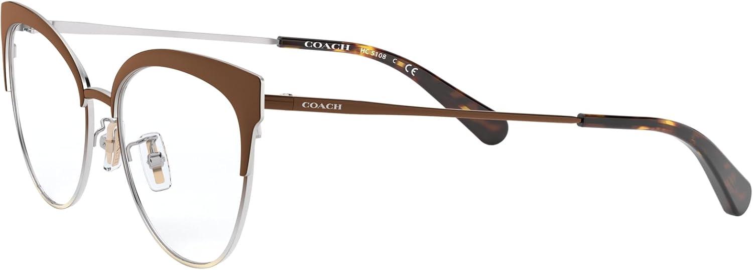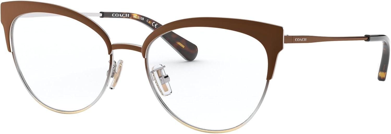 Lightweight construction and Signature C molded temples, gives the semi-rimless bold cat eye HC5108 dimension and everyday wearability, finished with metal peaked edges and accented temple ends. Available in brown on gold to silver gradient. Coach eyeglass frames feature lenses that need to be replaced with prescription lenses so you can enjoy clear vision. Coach eyeglass frames sold by authorized sellers, like Amazon.com, are eligible for all manufacturer warranties and guarantees. Click on the Coach link above the product title to shop the entire Coach sunglass and eyeglass assortment.