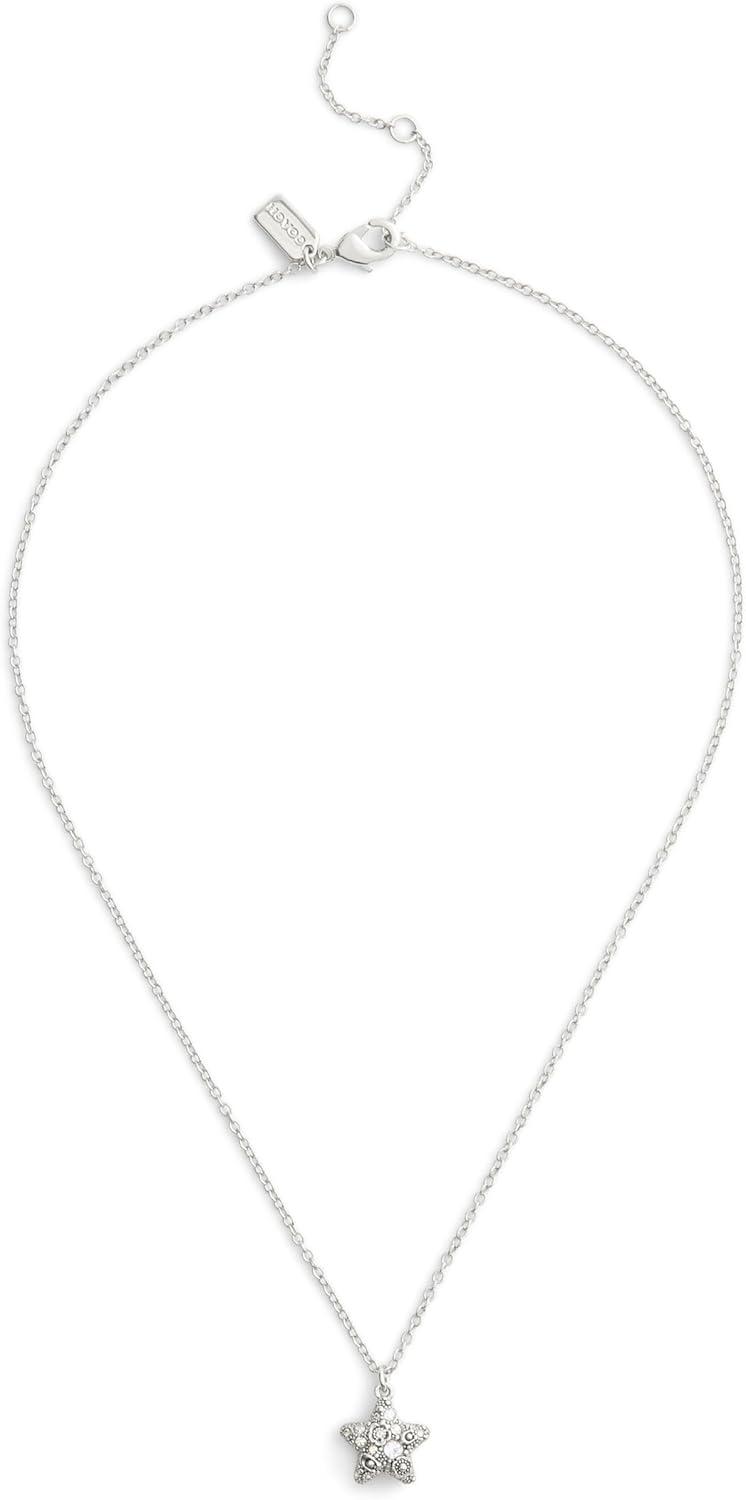 Sophisticated jewelry set featuring coordinating necklace and earrings. Refined chain necklace featuring celestial star pendant adorned with sparkly pavé, signature sculpted C hardware and iconic tea roses. Perfectly paired with everyday star stud earrings with hypoallergenic titanium posts to complete the look. Necklace has an adjustable lobster clasp closure and earrings have a post back closure. Made from brass, glass crystal and titanium. Includes signature COACH jewelry dustbag.