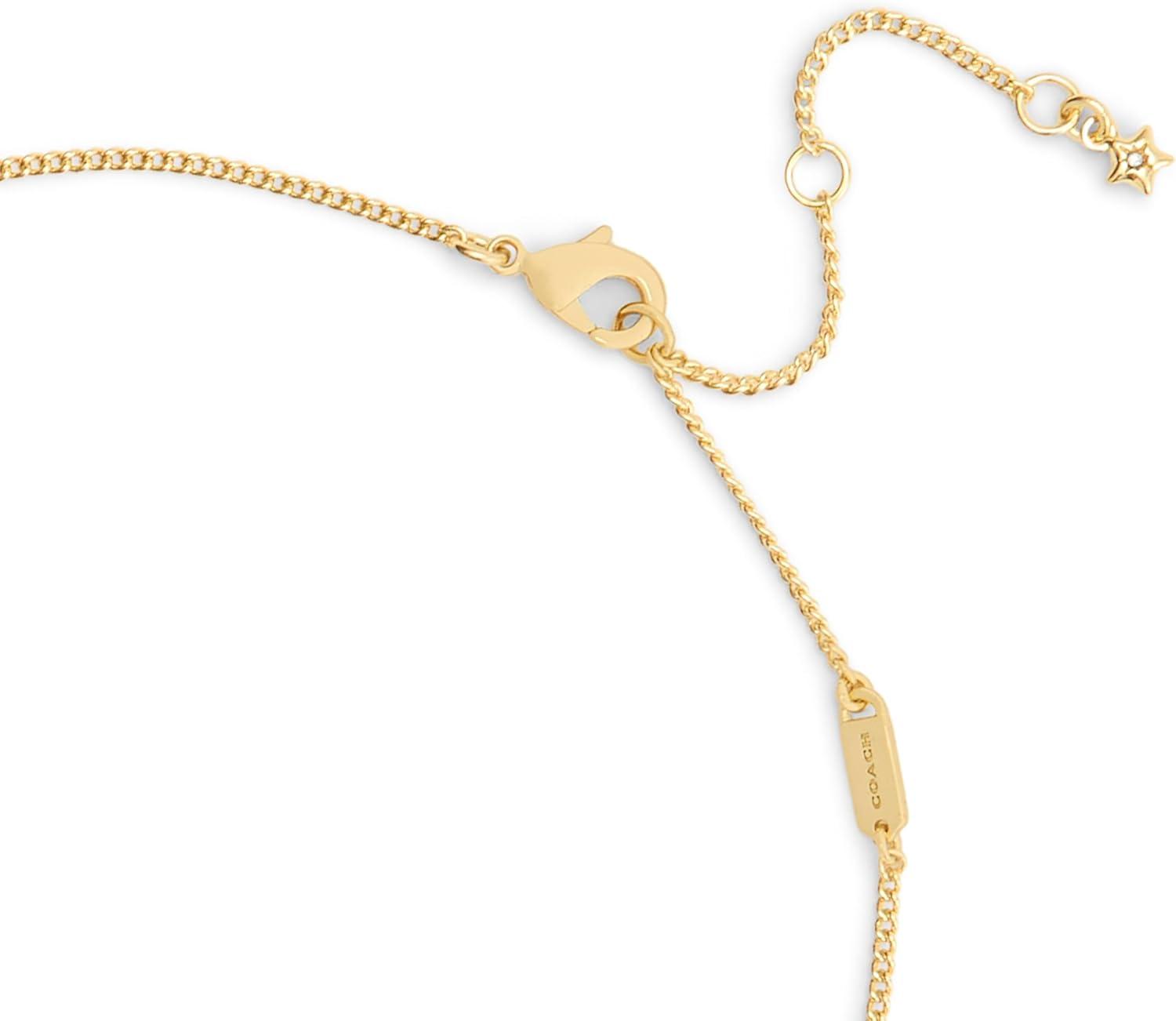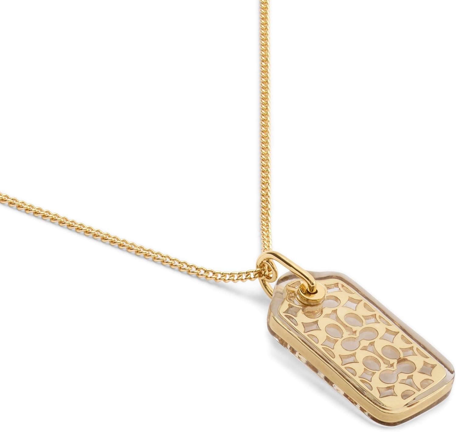 Refined chain necklace featuring iconic hangtag pendant in playful lucite adorned with quilted signature sculpted C motif. Necklace has an adjustable lobster clasp closure. Made from brass and lucite. Includes signature COACH jewelry dustbag.