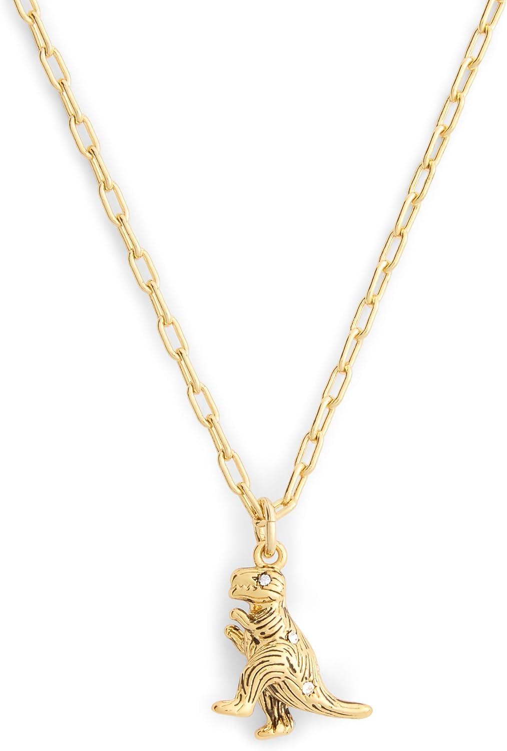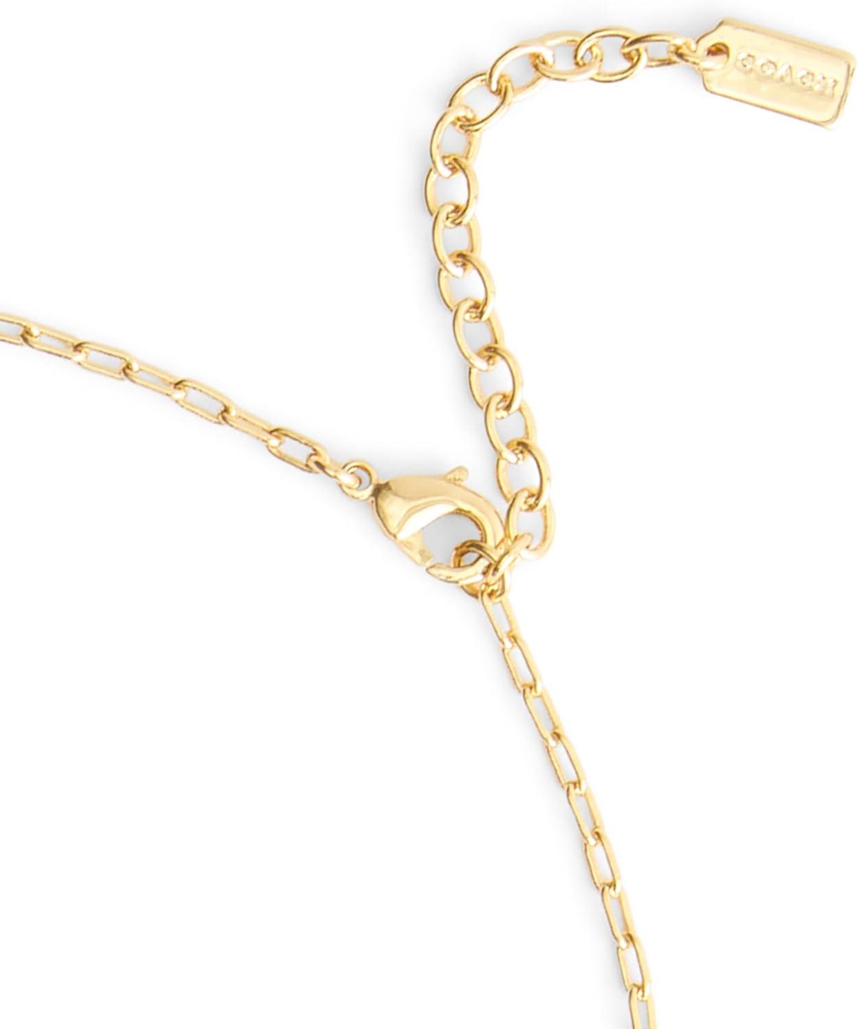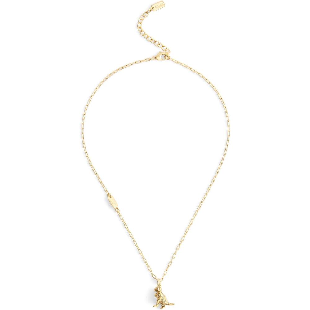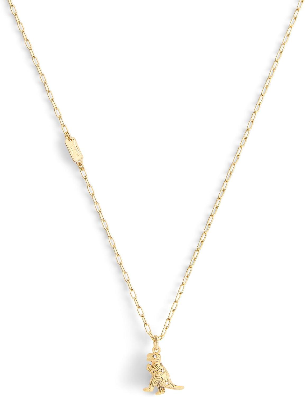 Refined chain necklace featuring signature Rexy dino pendant adorned with minimal stones and brushed finish perfect for everyday. Necklace has an adjustable lobster clasp closure. Made from brass and glass crystal. Includes signature COACH jewelry dustbag.