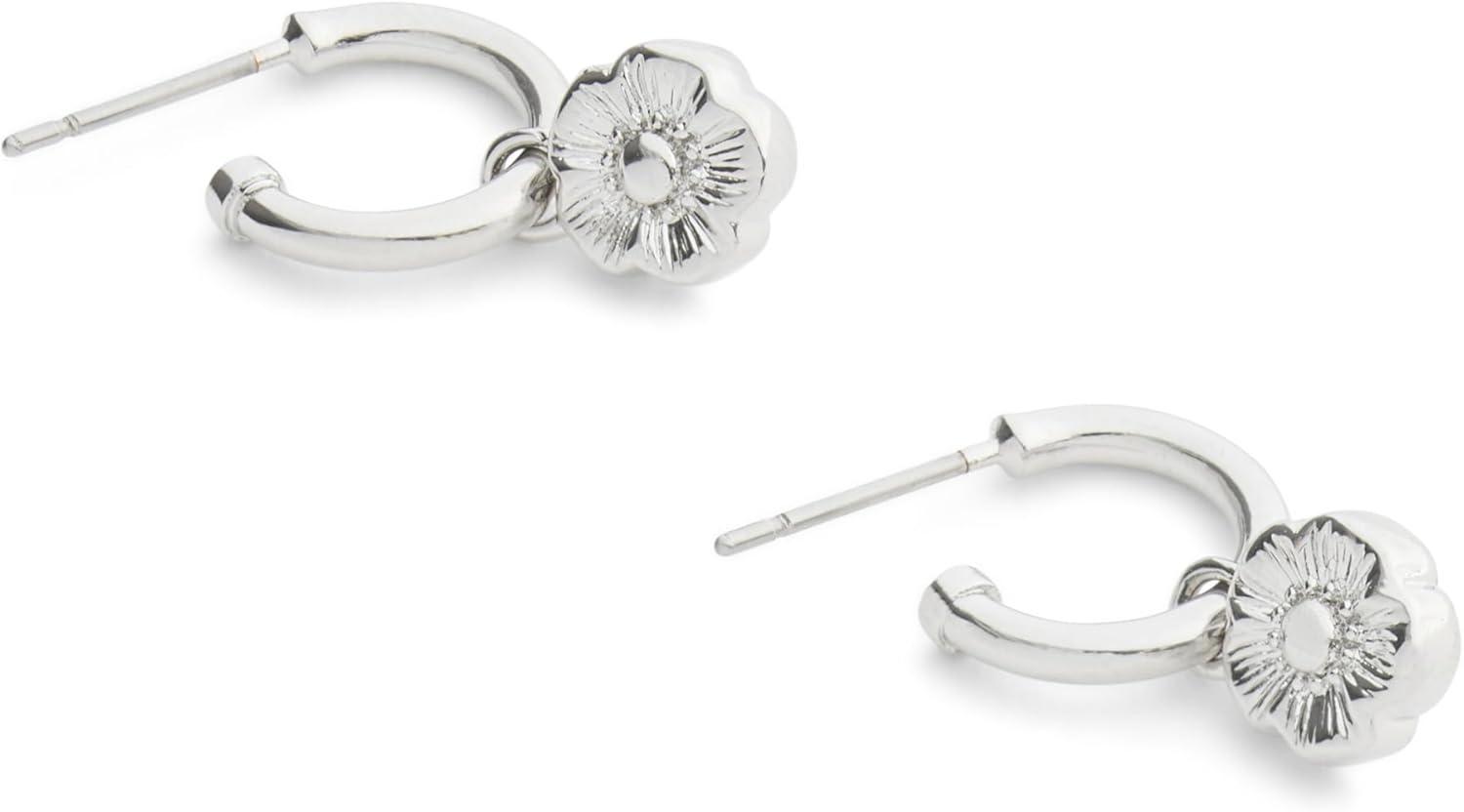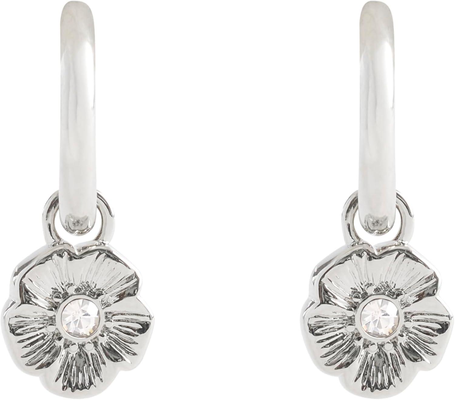 COACH Jewelry Women’s Signature Tea Rose Charm Huggie Earrings