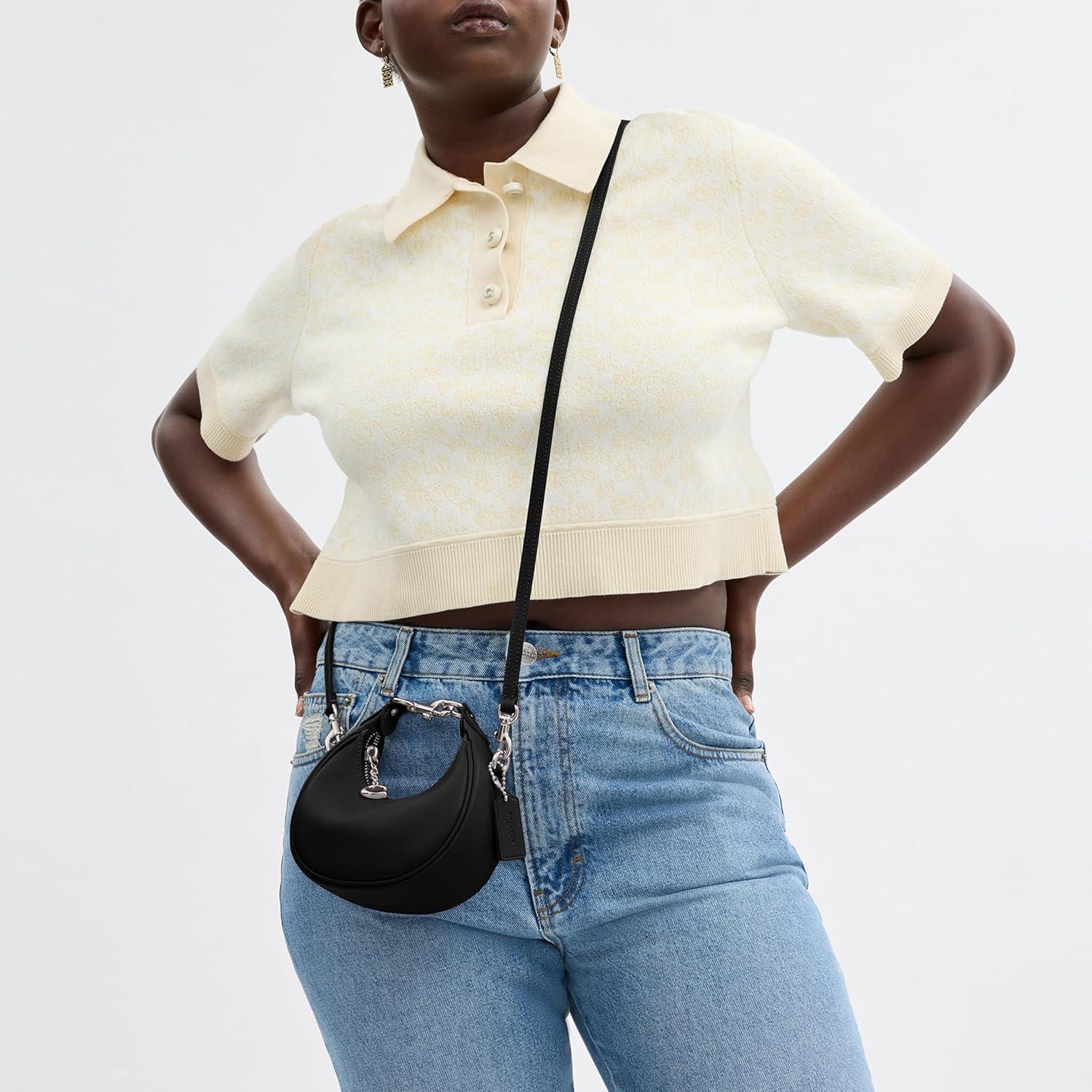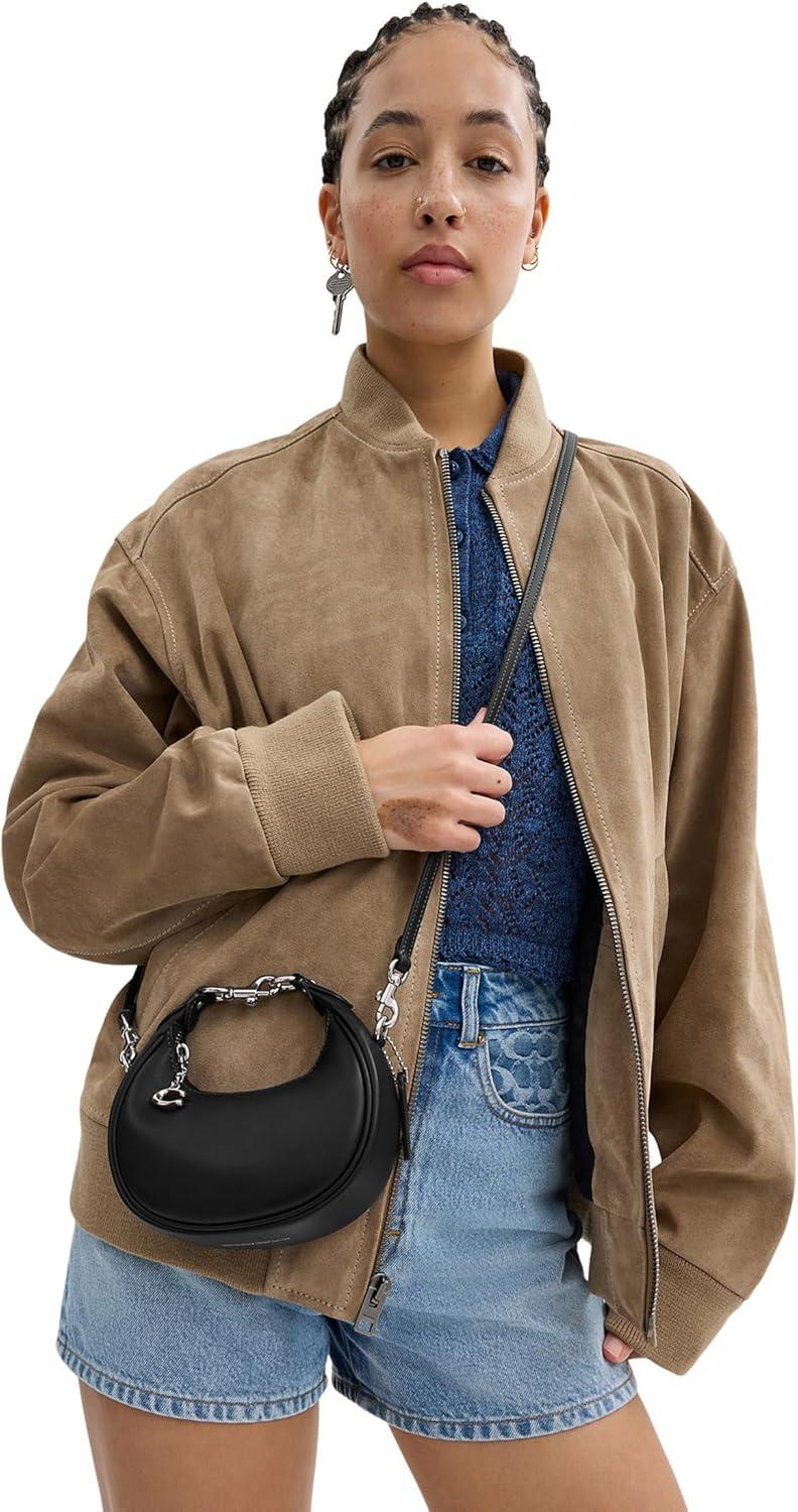 Ahead of the curve, our Jonie is a rounded shoulder bag that’s part crescent silhouette, part hobo and all attitude. Carry by hand and wear as a wristlet with the interlocking top handle for nights out or add the detachable leather crossbody strap for days on the go. Glovetanned leather, zip-top closure, fabric lining, handle with 2 3/4″ drop, detachable strap with 21 1/2″drop for shoulder or crossbody wear, 6″ (L) x 3 1/4″ (H) x 2 1/4″ (W).
