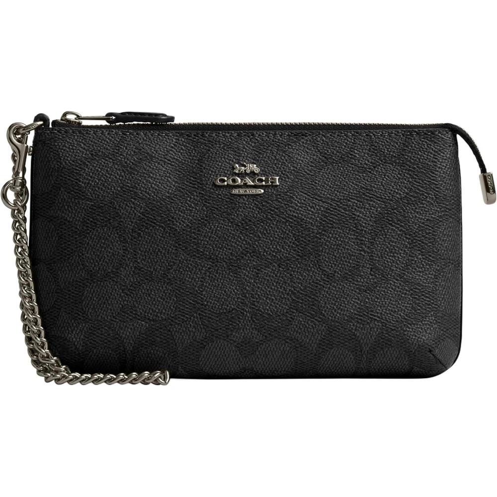 Coach Large Wristlet W Chain(Charcoal/Black)