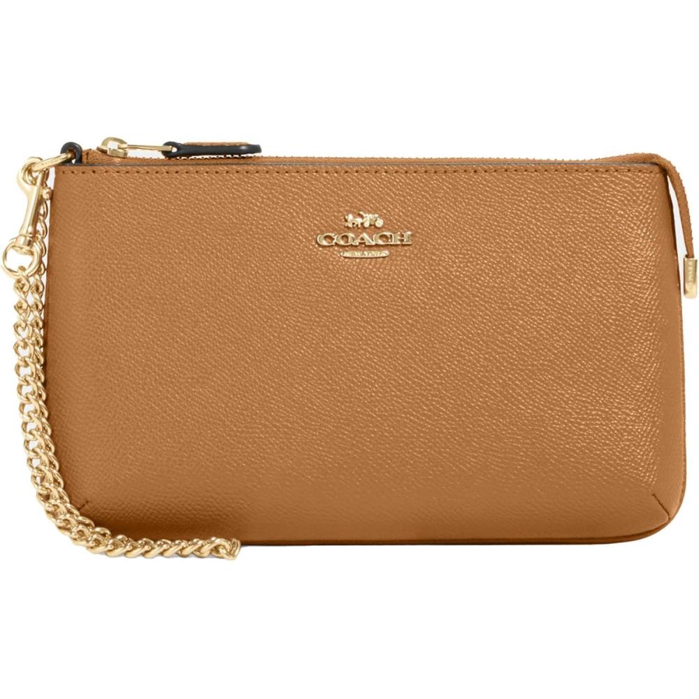 Coach Large Wristlet W Chain(Khaki Saddle)