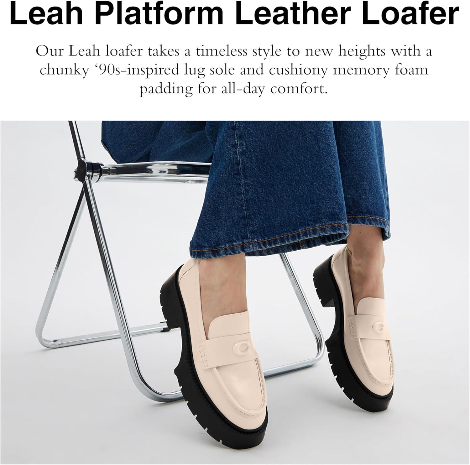 Our Leah loafer takes a timeless style to new heights with a chunky ‘90s-inspired lug sole for subtle lift. Crafted of lustrous smooth leather, this women's loafer is finished with tonal Signature hardware – for perfectly iconic Coach shoes.