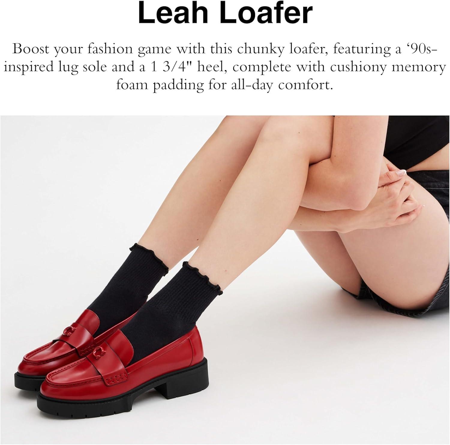 Our Leah loafer takes a timeless style to new heights with a chunky ‘90s-inspired lug sole for subtle lift. Crafted of lustrous smooth leather, this women's loafer is finished with tonal Signature hardware – for perfectly iconic Coach shoes.