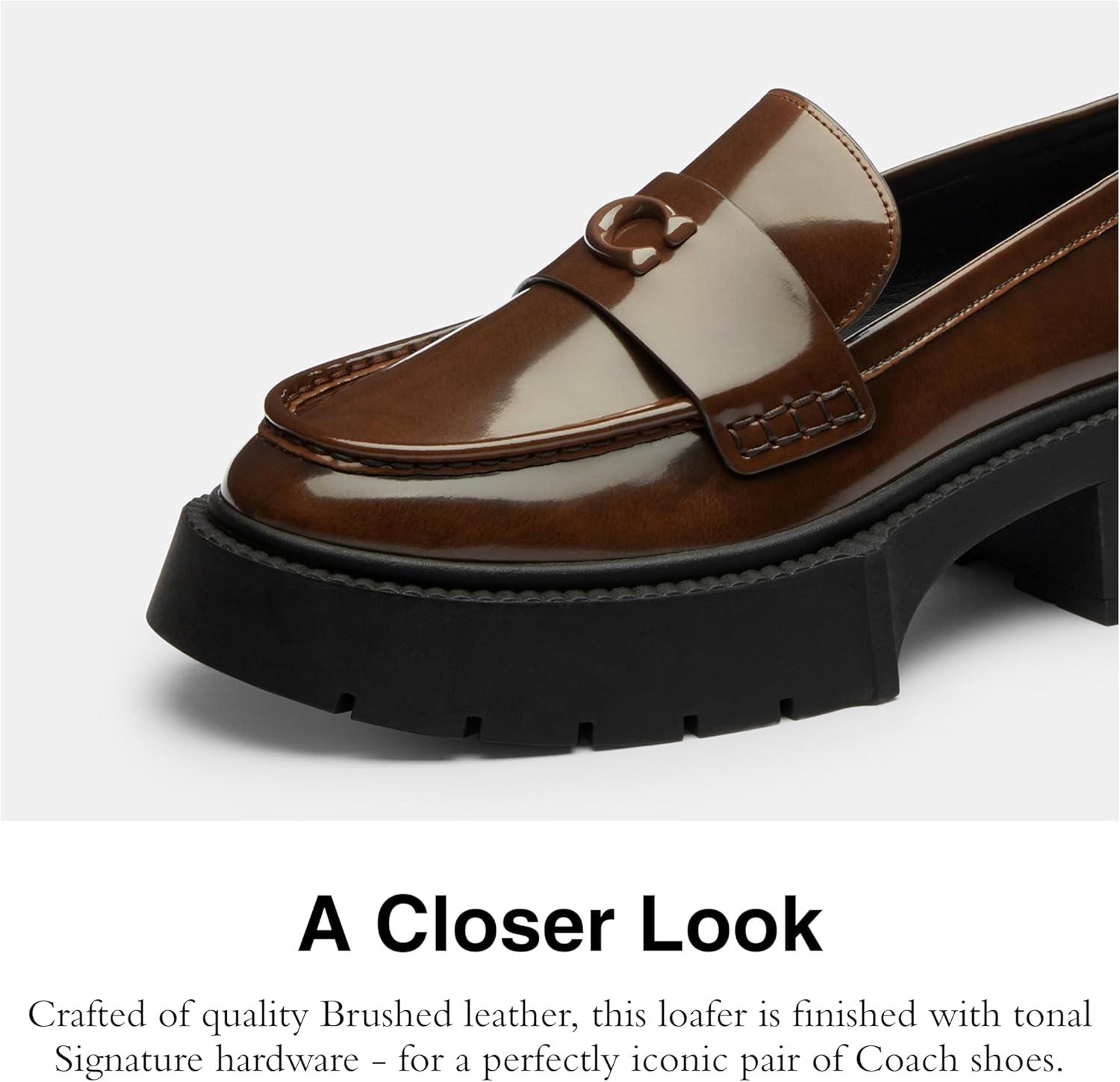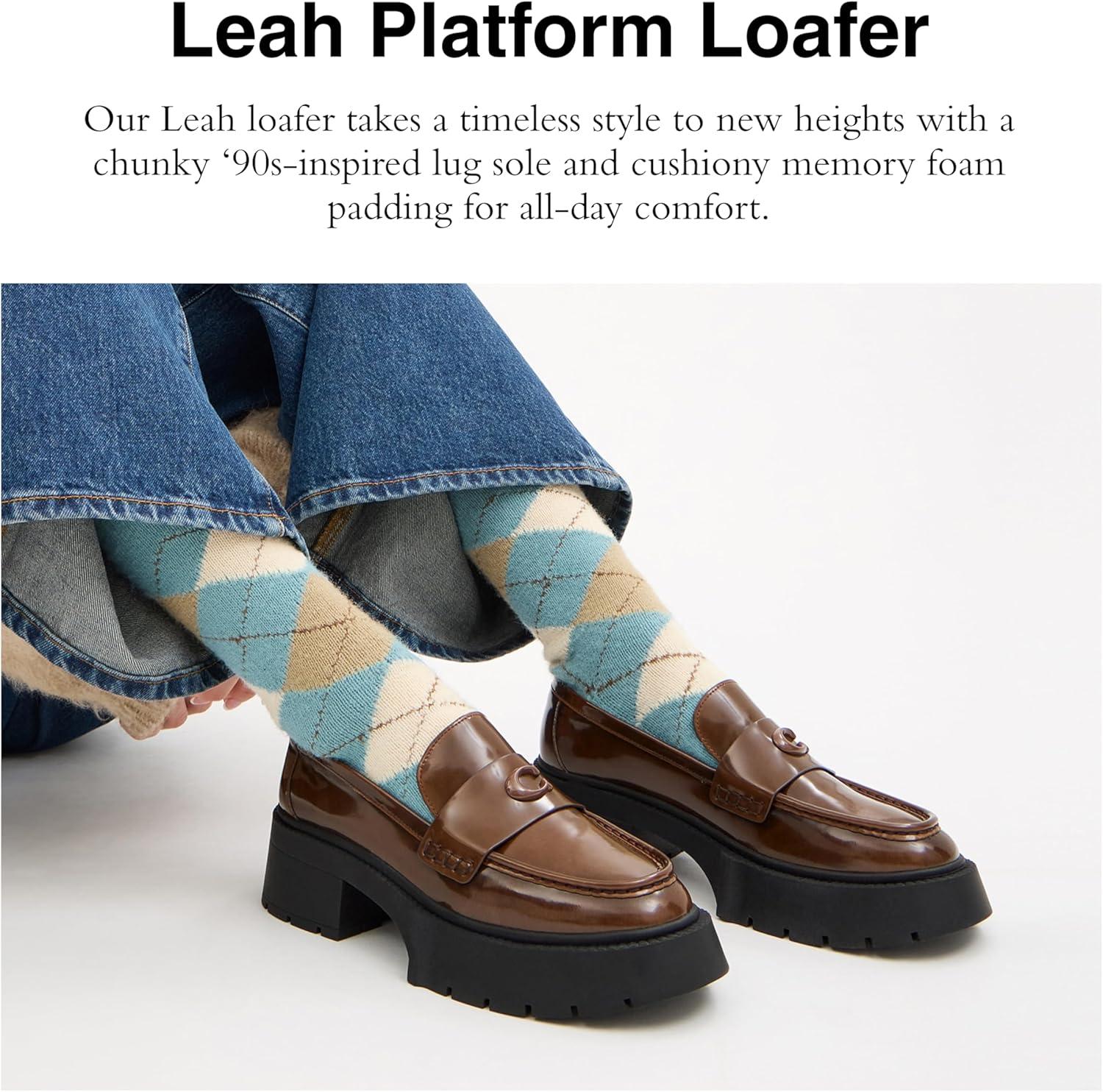 Our Leah loafer takes a timeless style to new heights with a chunky ‘90s-inspired lug sole for subtle lift. Crafted of lustrous smooth leather, this women's loafer is finished with tonal Signature hardware – for perfectly iconic Coach shoes.