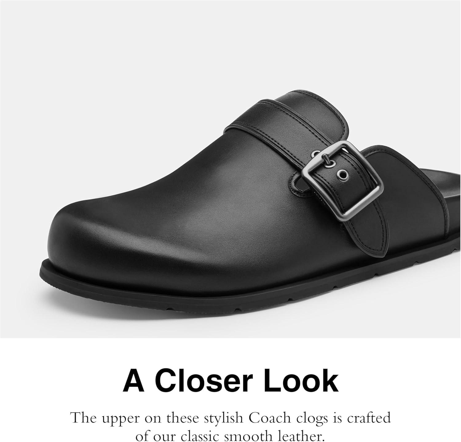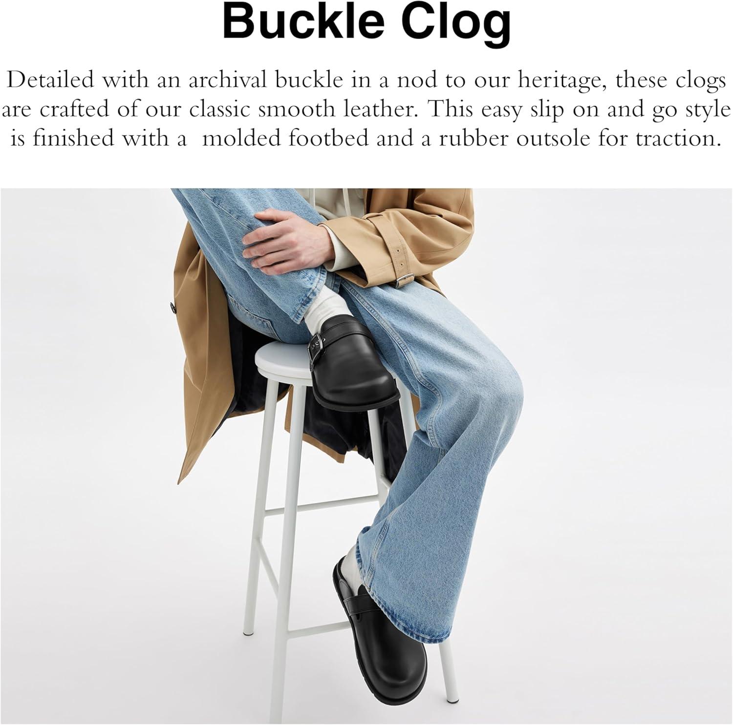 Detailed with an archival buckle in a nod to our heritage, this clog is crafted of classic smooth leather. The easy slip on and go style is finished with a comfortable molded footbed and a rubber outsole for added traction. Leather upper, man-made leather lining and footbed, rubber outsole, slip on.