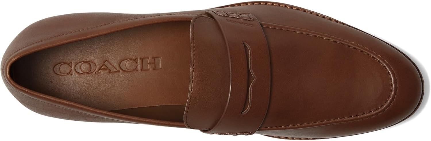Crafted of smooth leather, this wear-with-everything Declan men's dress loafer is finished with our polished Coach hardware for a subtle heritage touch. These timeless leather loafers feature a traditional penny-keeper and a leather sole.