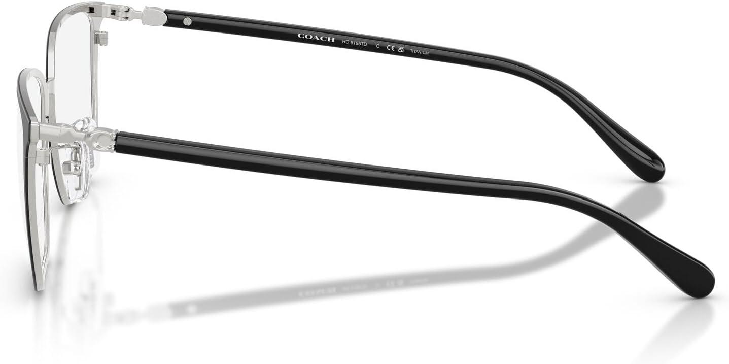 The Coach HC5195TD eyeglass frames feature a modern square silhouette that embodies the innovative design of Coach's contemporary men's collection. This sophisticated square shape delivers contemporary style with a new temple concept and advanced titanium executions that create a distinctive luxury aesthetic. Available in premium two-tone finishes including matte black/silver, shiny black/light gold, shiny dark grey/silver, and matte dark brown/light gold that showcase refined contrast detailing. The flat metal front construction ensures exceptional quality and lightweight comfort, while gooseneck nose pads provide optimal fit and adjustability. Perfect for the modern man who appreciates innovative design with timeless sophistication, these frames seamlessly transition from professional settings to casual occasions. These prescription-ready frames are designed to be fitted with your custom prescription lenses, ensuring clear vision while maintaining that signature Coach elegance. The premium titanium construction and carefully crafted details offer all-day comfort whether you're at work, traveling, or enjoying everyday pursuits. Each pair comes with a protective case and cleaning cloth to preserve your frames and maintain their pristine appearance. Coach eyeglass frames sold by authorized sellers, like Amazon.com, are eligible for all manufacturer warranties and guarantees. Click on the Coach link above the product title to shop the entire Coach sunglass and eyeglass assortment.