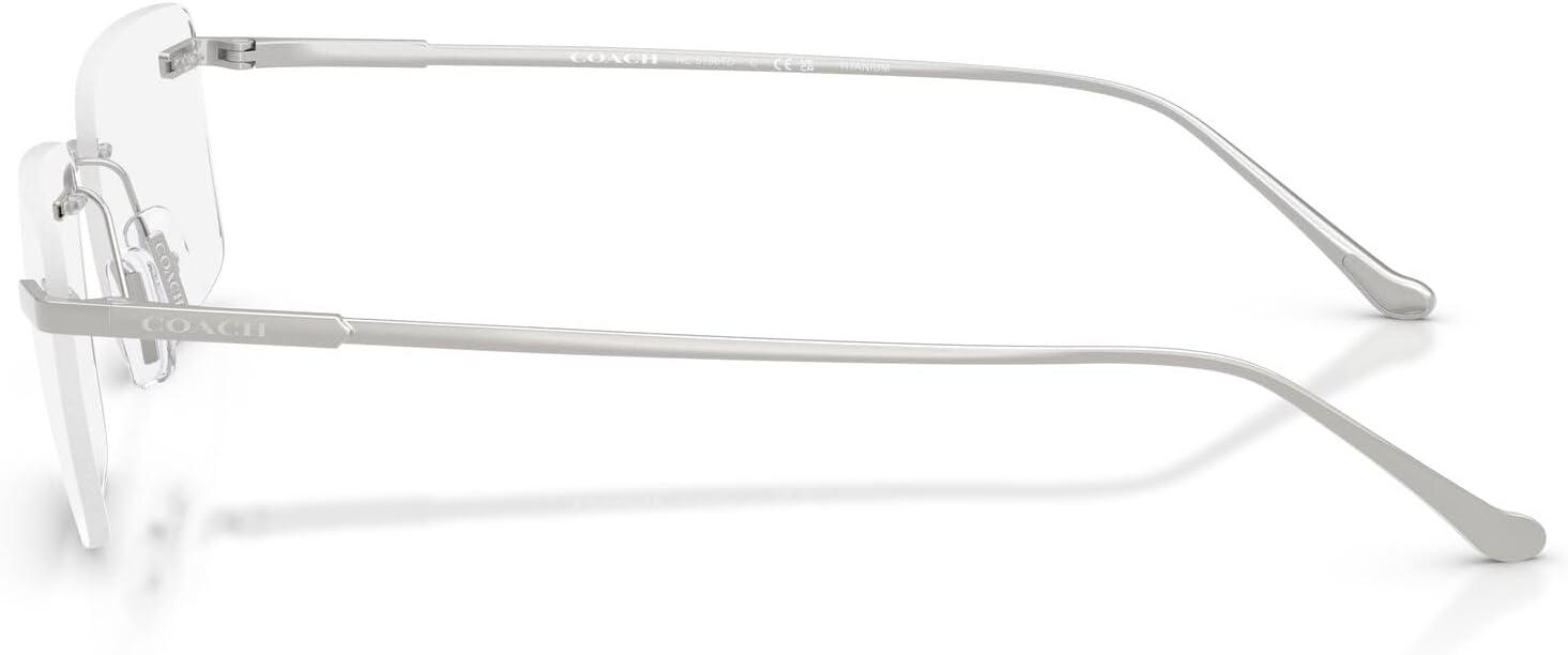 The Coach HC5196TD eyeglass frames feature a sleek rectangular silhouette from Coach's modern men's collection. This sophisticated design showcases advanced titanium executions with a new temple concept and 3-piece mount rimless construction for a distinctive luxury aesthetic. Available in premium metal finishes including shiny silver, shiny gunmetal, and shiny gold. The rimless design ensures lightweight comfort, while gooseneck nose pads provide optimal fit and adjustability. Perfect for transitioning from professional settings to casual occasions. These prescription-ready frames are designed to be fitted with your custom prescription lenses for clear vision. Each pair comes with a protective case and cleaning cloth to preserve your frames and maintain their pristine appearance. Coach eyeglass frames sold by authorized sellers, like Amazon.com, are eligible for all manufacturer warranties and guarantees. Click on the Coach link above the product title to shop the entire Coach sunglass and eyeglass assortment.