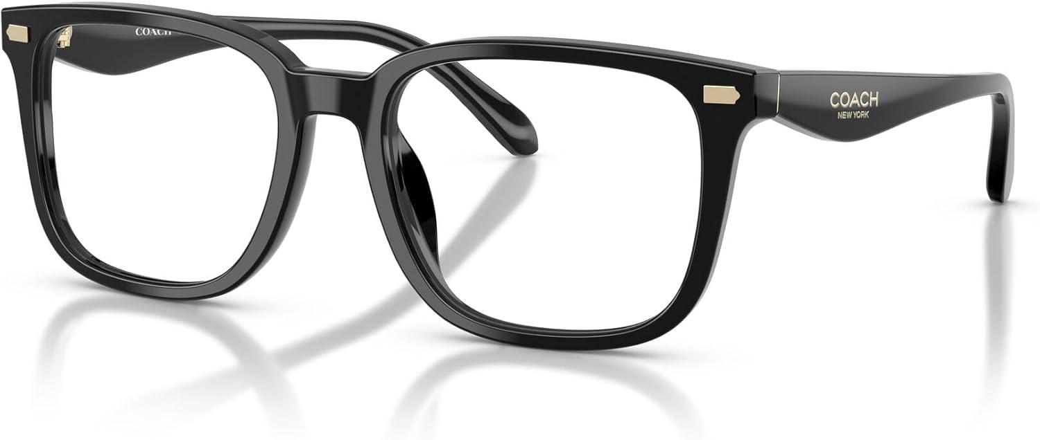 The Coach HC6276U Universal Fit eyeglass frames feature a sharp square silhouette from Coach's Coach New York collection. This refined design showcases distinctive logo details with elevated horn acetates and distinctive striated patterns that create rich acetate appeal. Available in versatile colorways including black, striated caramel, striated olive, and striated blue that offer both classic and contemporary styling options. Featuring a Universal Fit for enhanced comfort, these frames include a narrower bridge and longer, more curved nose pads that provide better grip while reducing contact with your cheekbones. The square shape features pointed temple tips and provides flattering proportions while the quality construction ensures exceptional durability and all-day wearability. Perfect for the modern man who appreciates refined design with timeless style, these frames transition effortlessly from professional to social settings. These prescription-ready frames are designed to be fitted with your custom prescription lenses for clear vision. Each pair comes with a protective case and cleaning cloth to preserve your frames and maintain their pristine appearance. Coach eyeglass frames sold by authorized sellers, like Amazon.com, are eligible for all manufacturer warranties and guarantees. Click on the Coach link above the product title to shop the entire Coach sunglass and eyeglass assortment.