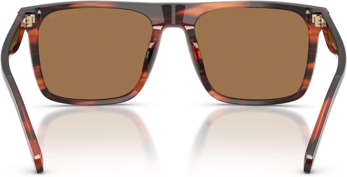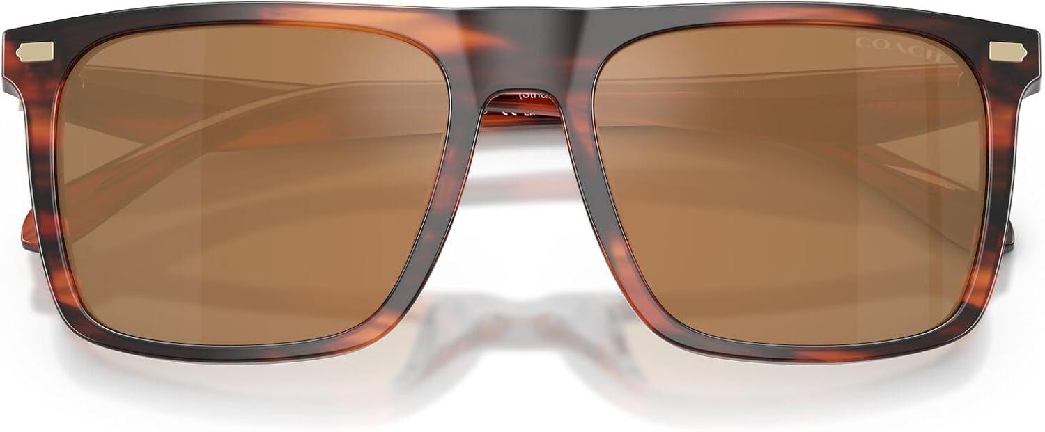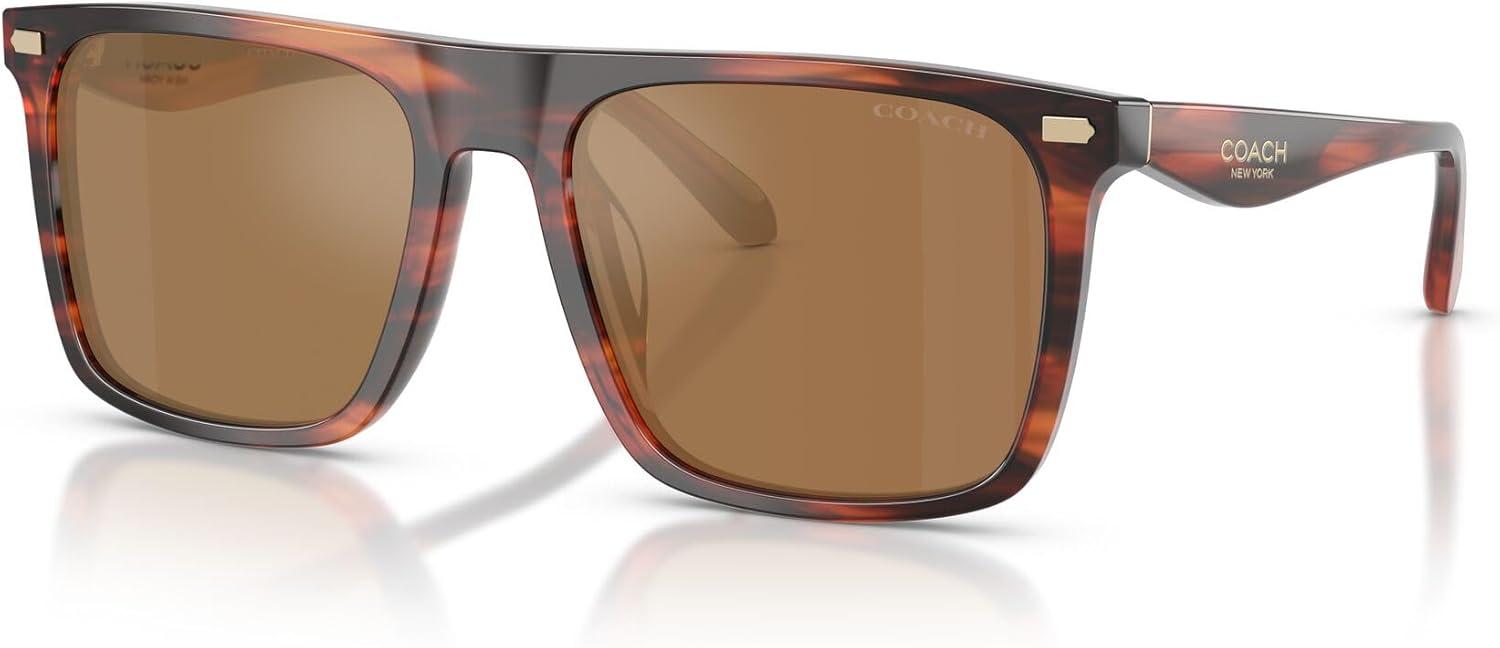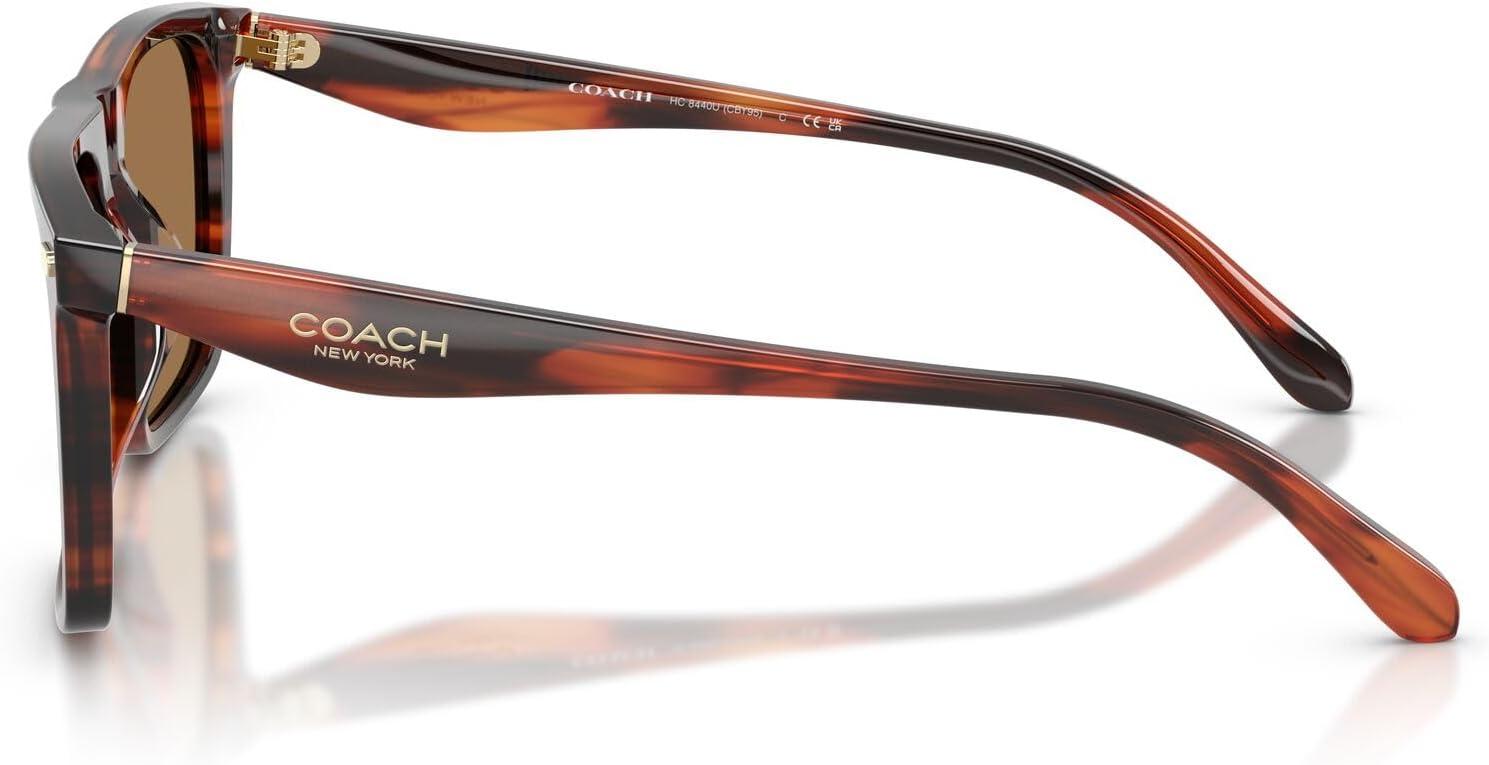 The Coach HC8440U Universal Fit sunglasses feature a sophisticated square silhouette from Coach's Coach New York collection. This refined design showcases elevated horn acetates with distinctive logo details featuring the Coach New York logo and pointed temple tips that create contemporary luxury appeal with sophisticated styling. Available in versatile frame and lens combinations including black with grey solid lenses, striated caramel with brown flash lenses, striated olive with green grey solid lenses, and striated cherry oak with green solid lenses that offer both classic and modern styling options. The square shape provides flattering proportions while the universal fit construction ensures exceptional comfort and all-day wearability for all facial structures. Perfect for the modern man who appreciates sophisticated design with distinctive detailing, these sunglasses transition effortlessly from professional settings to everyday adventures. All lenses offer complete UV protection to shield your eyes from harmful rays during outdoor activities and daily wear. Each pair comes with a protective case and cleaning cloth to preserve your frames and maintain their pristine appearance. Coach sunglasses sold by authorized sellers, like Amazon.com, are eligible for all manufacturer warranties and guarantees. Click on the Coach link above the product title to shop the entire Coach sunglass and eyeglass assortment.