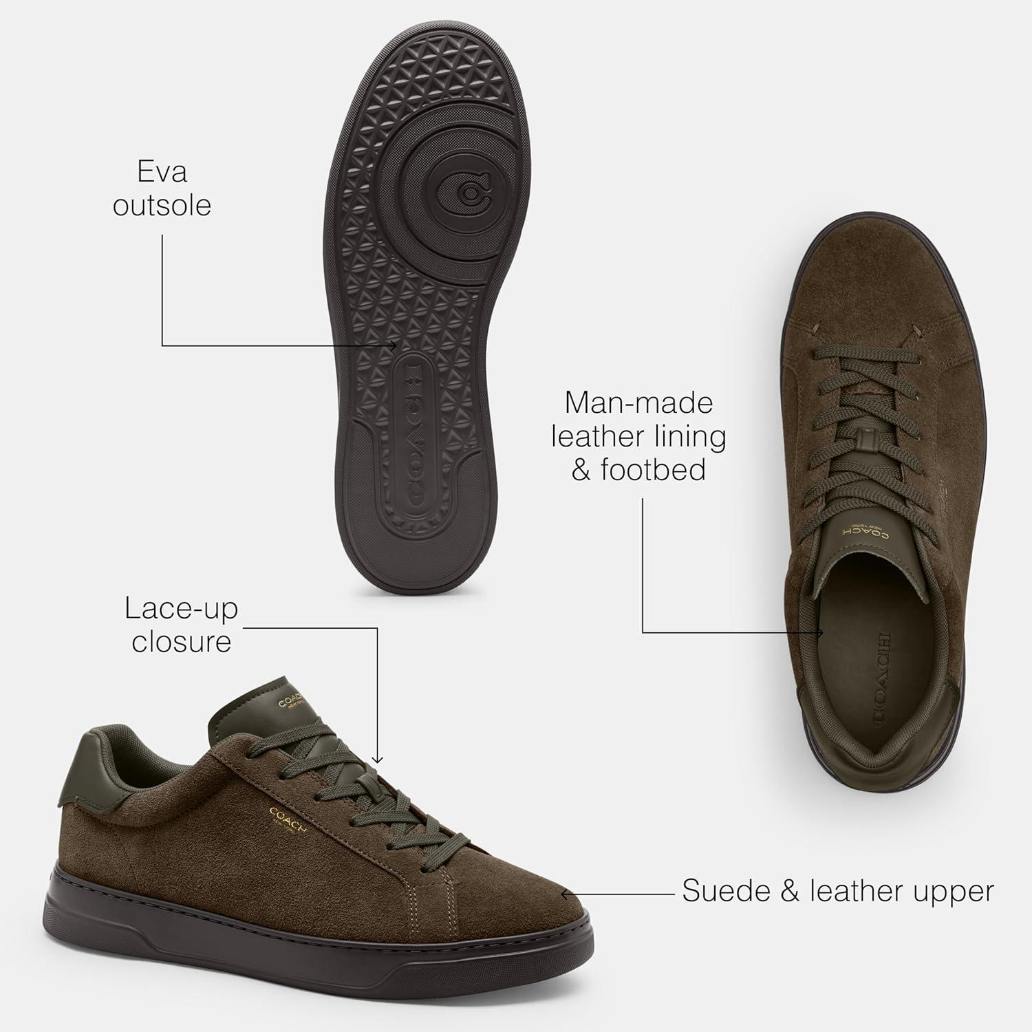 Coach Men’s High Line Sneaker in Suede(Olive.)