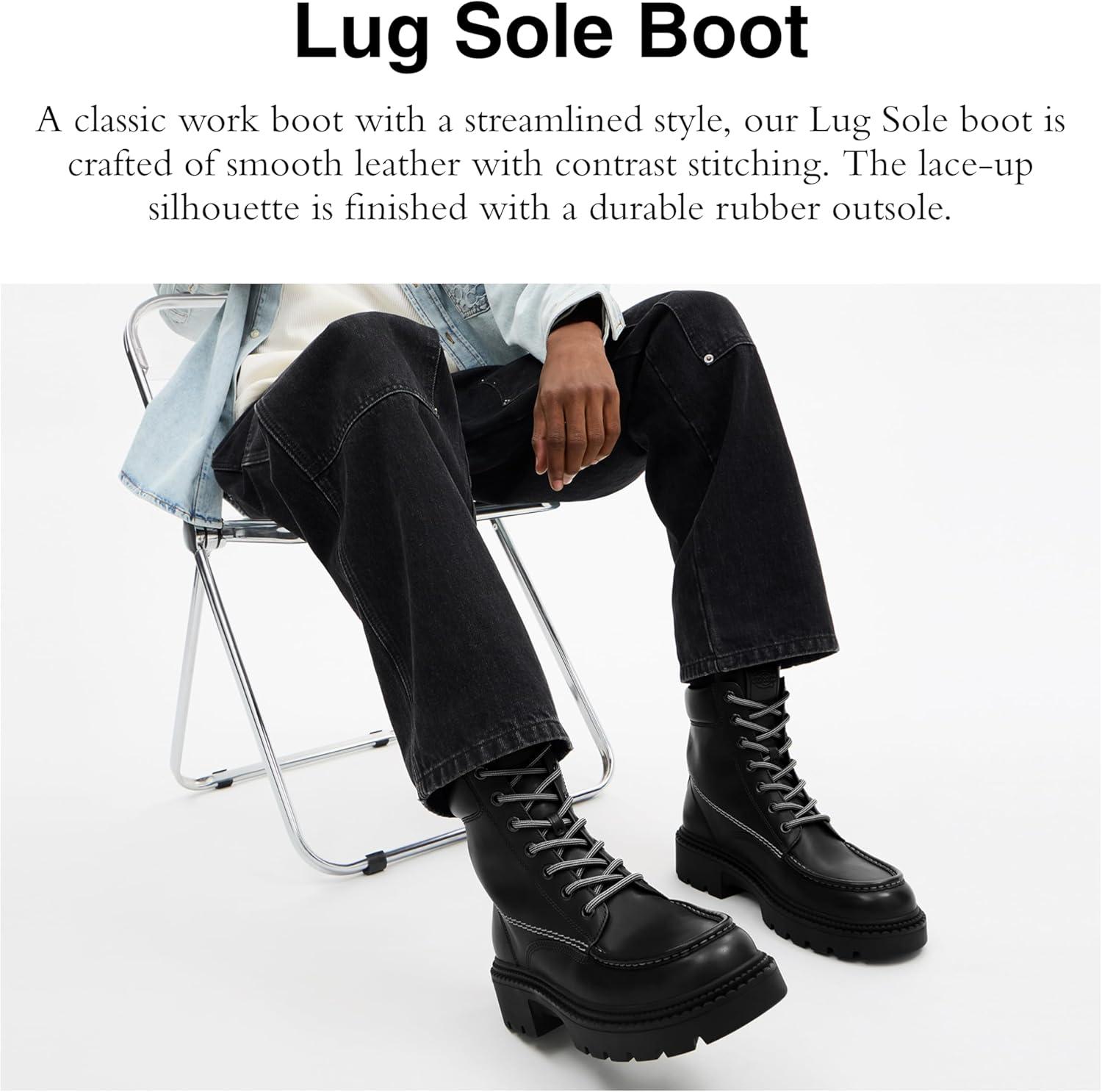 A classic work boot with a streamlined style, our Lug Sole boot is crafted of smooth leather with contrast stitching. The lace-up silhouette is finished with a durable rubber outsole for great traction on city streets. Wear these Lug Sole boots with jeans for a casual, effortlessly stylish look that is perfect for work days and weekends