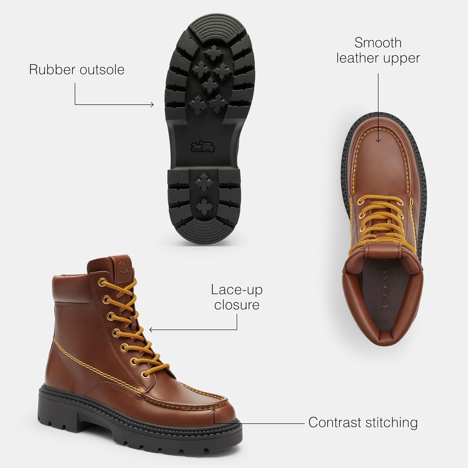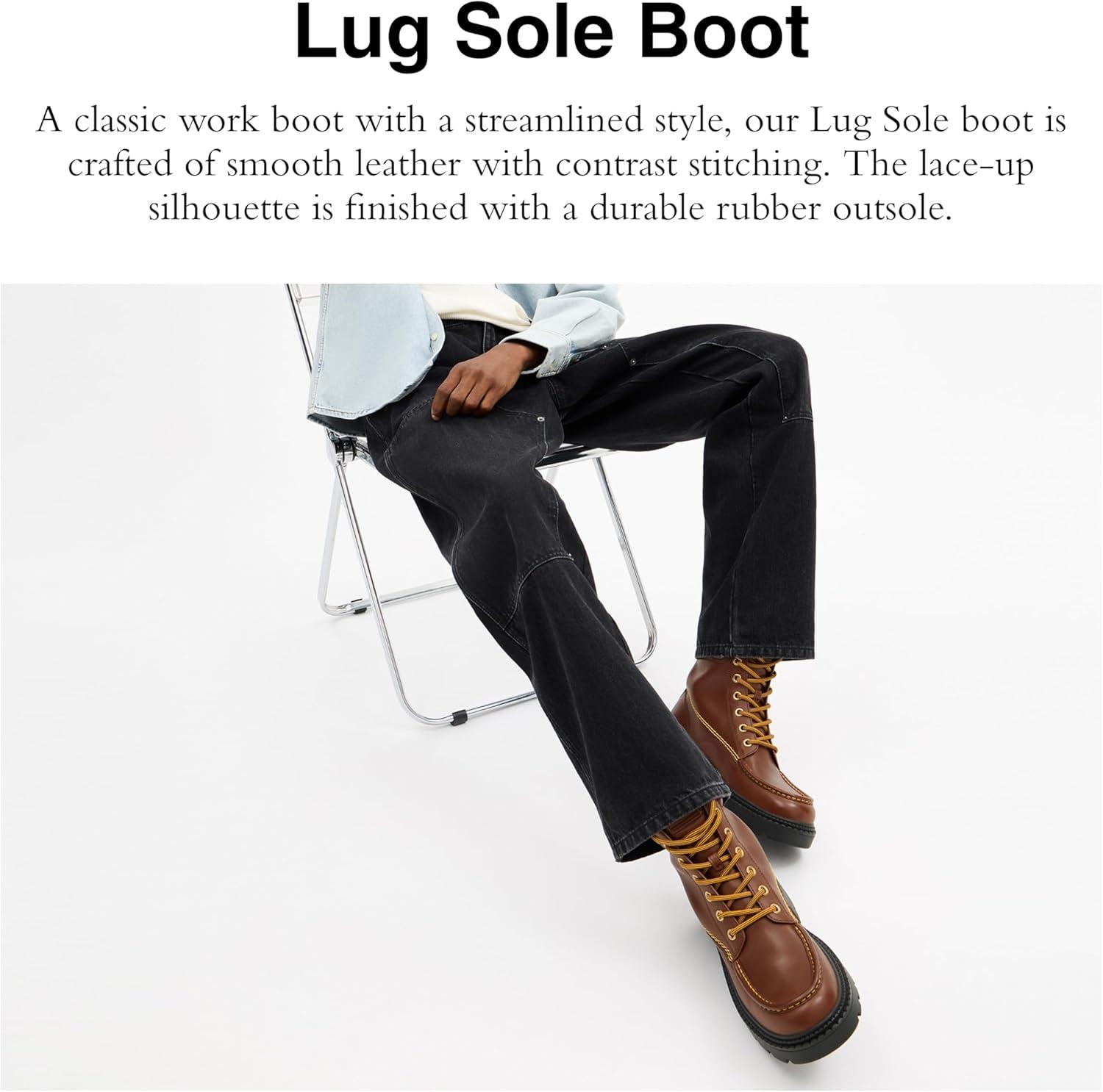 A classic work boot with a streamlined style, our Lug Sole boot is crafted of smooth leather with contrast stitching. The lace-up silhouette is finished with a durable rubber outsole for great traction on city streets. Wear these Lug Sole boots with jeans for a casual, effortlessly stylish look that is perfect for work days and weekends
