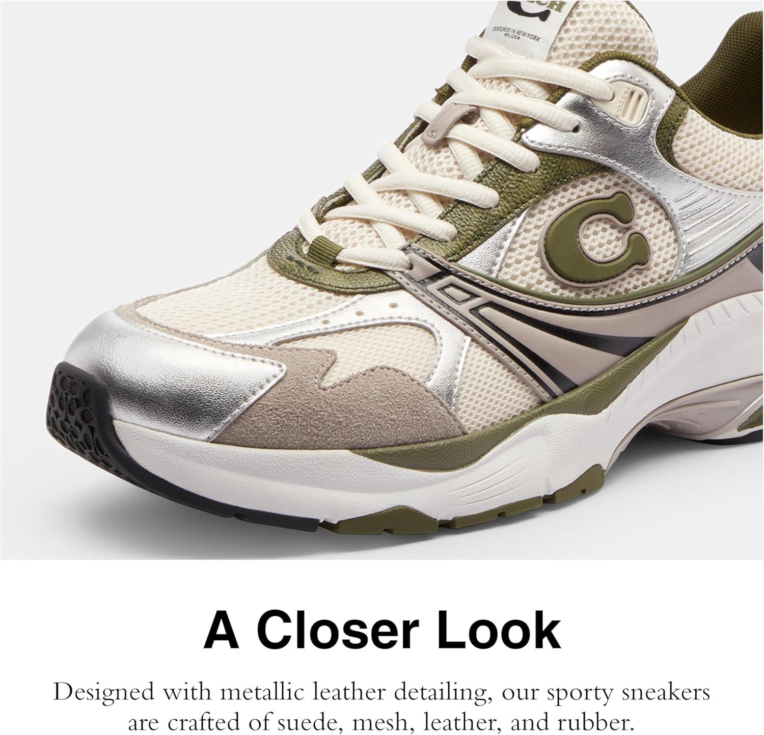 Put it in sport mode. Inspired by athletic sneakers and crafted with metallic detailing, these mesh Coach sneakers are stylish, sporty, and ready for anything. Leather, mesh and rubber upper, mesh lining and footbed, rubber outsole, lace-up closure.