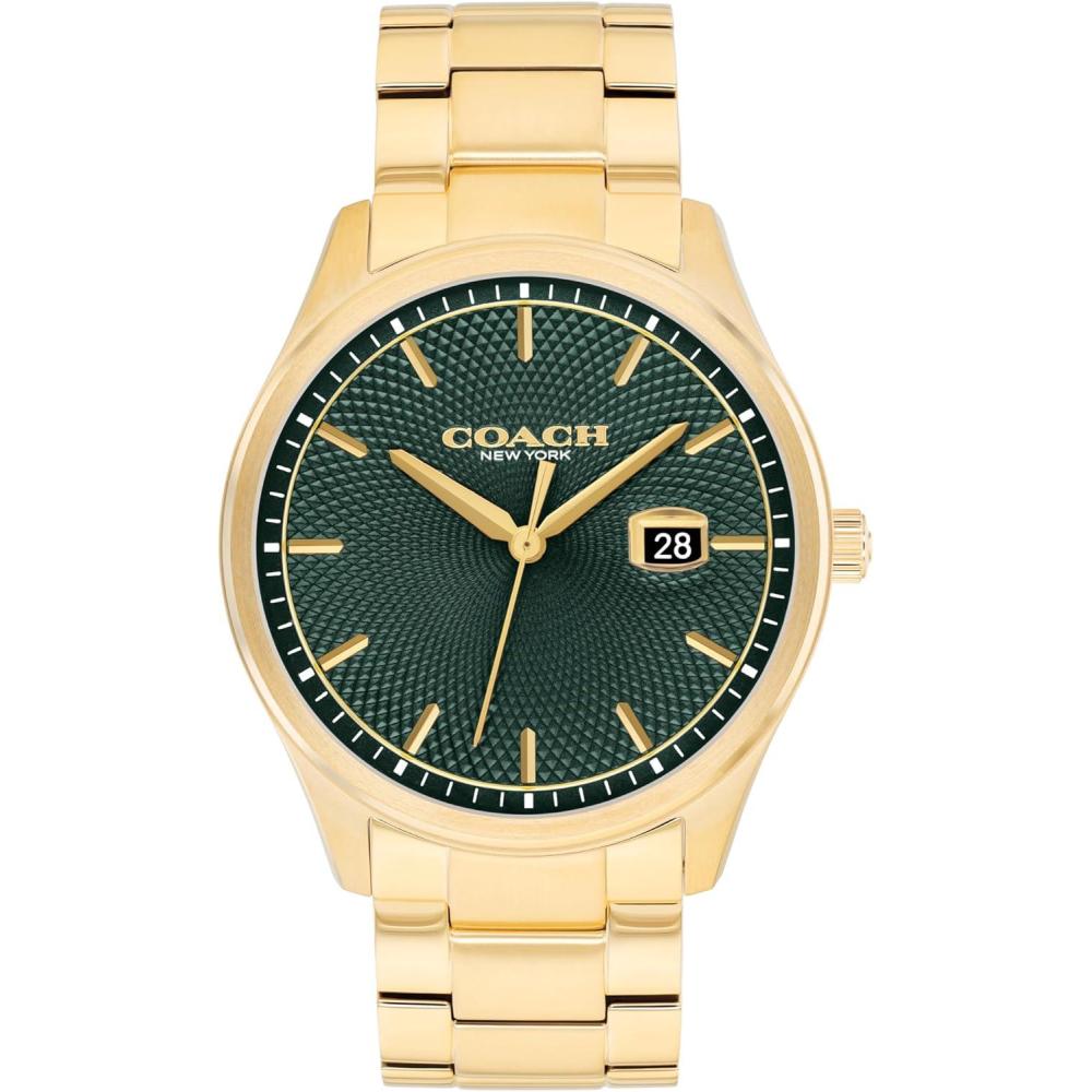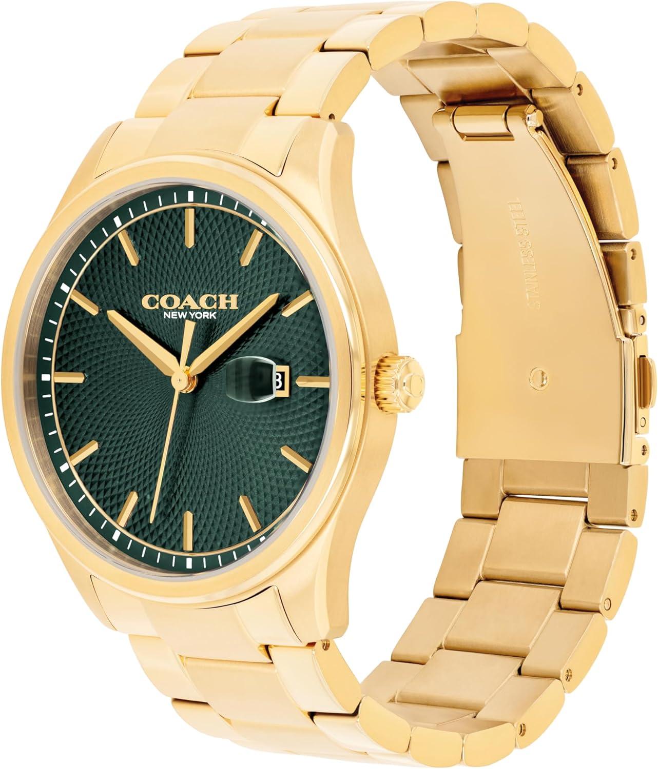 Coach Men’s Oliver 3H Quartz Watch, 41mm Case Size, Stainless Steel Bracelet, Date Display, Classic for Every Day – Gift for Him(Gold Plated)