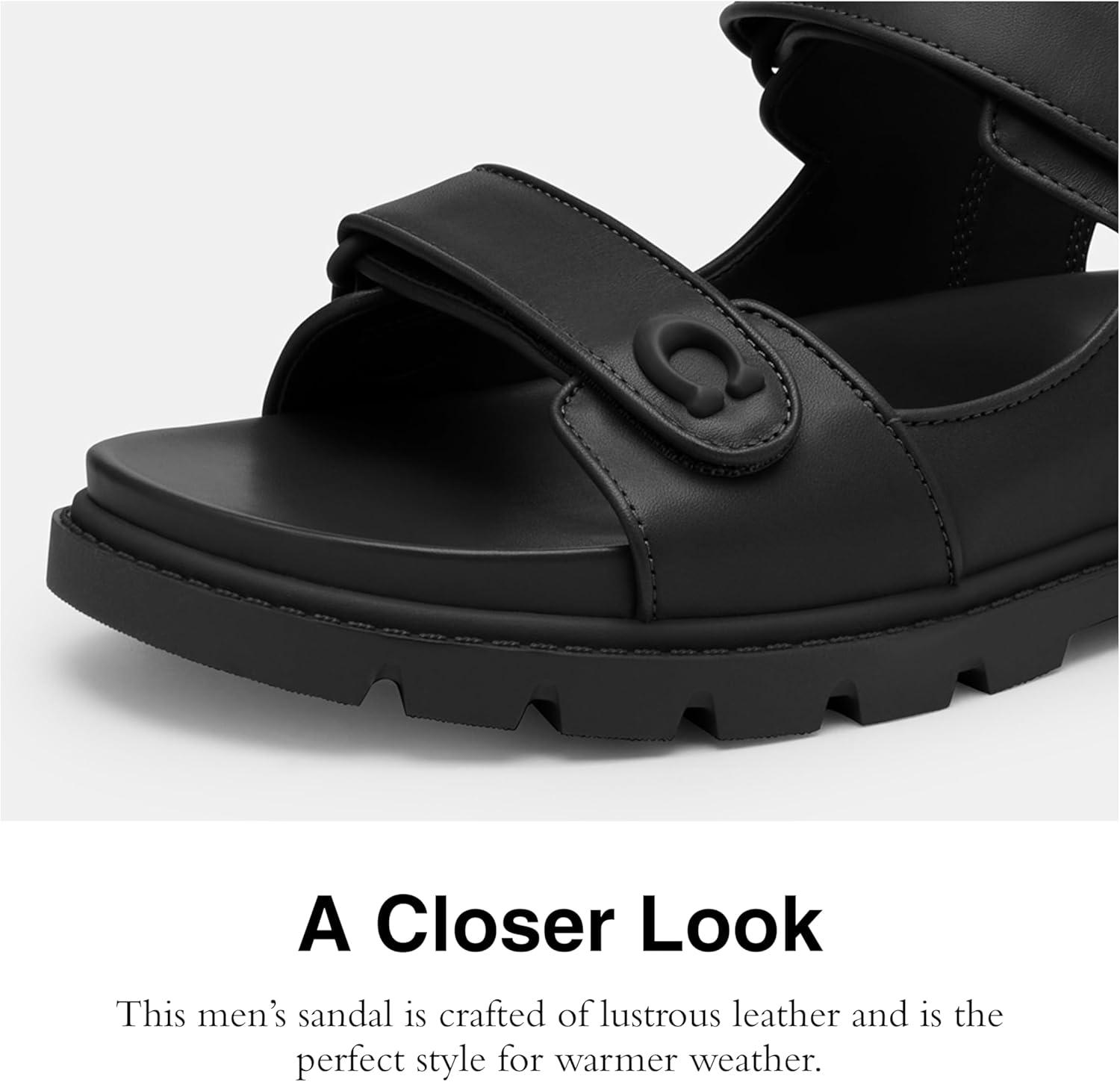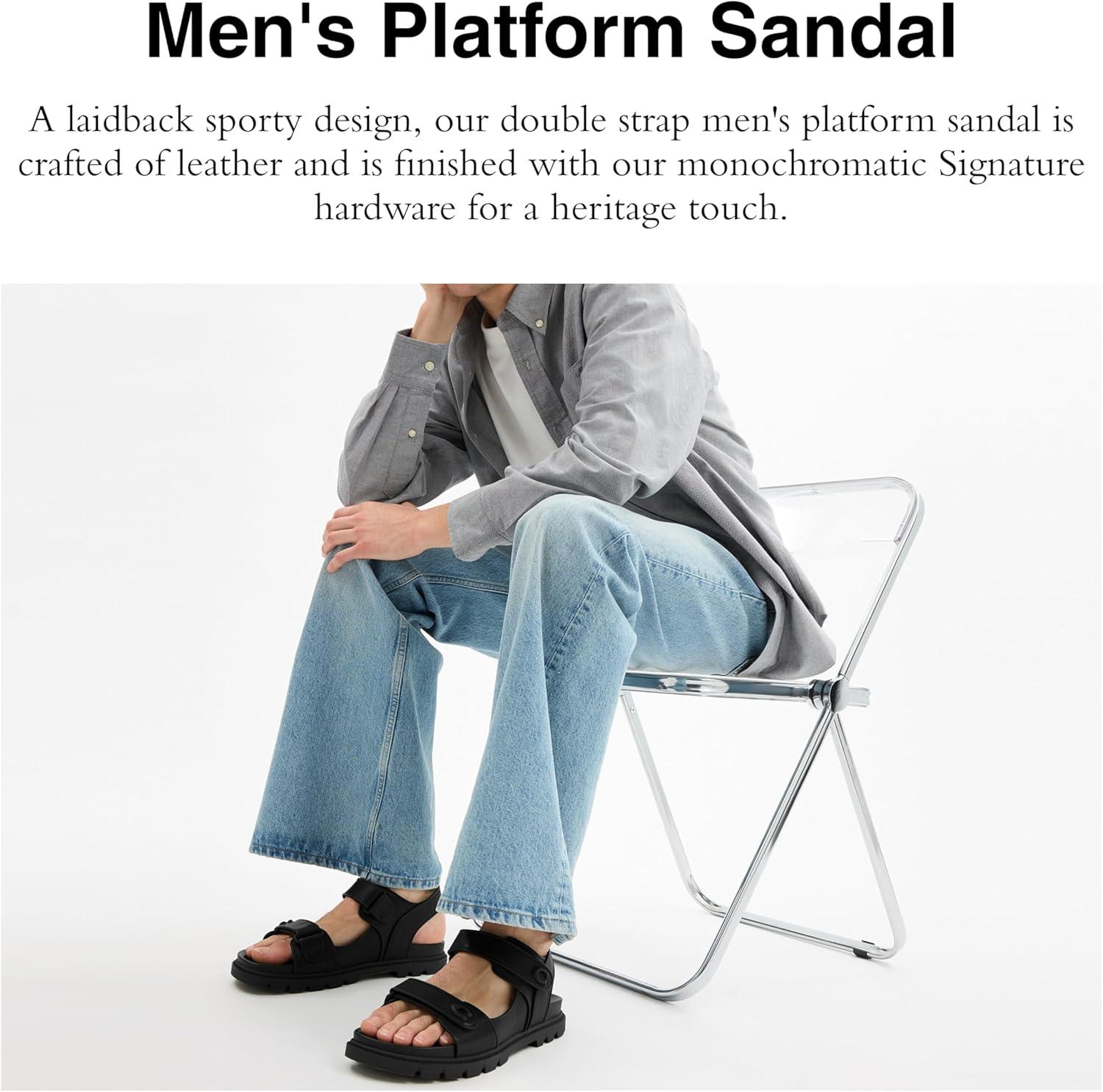 A laidback sporty design, our double strap men's platform sandal is crafted of leather and is finished with our Signature hardware for a heritage touch. Leather upper, man-made leather lining and footbed, rubber outsole, Velcro closure.