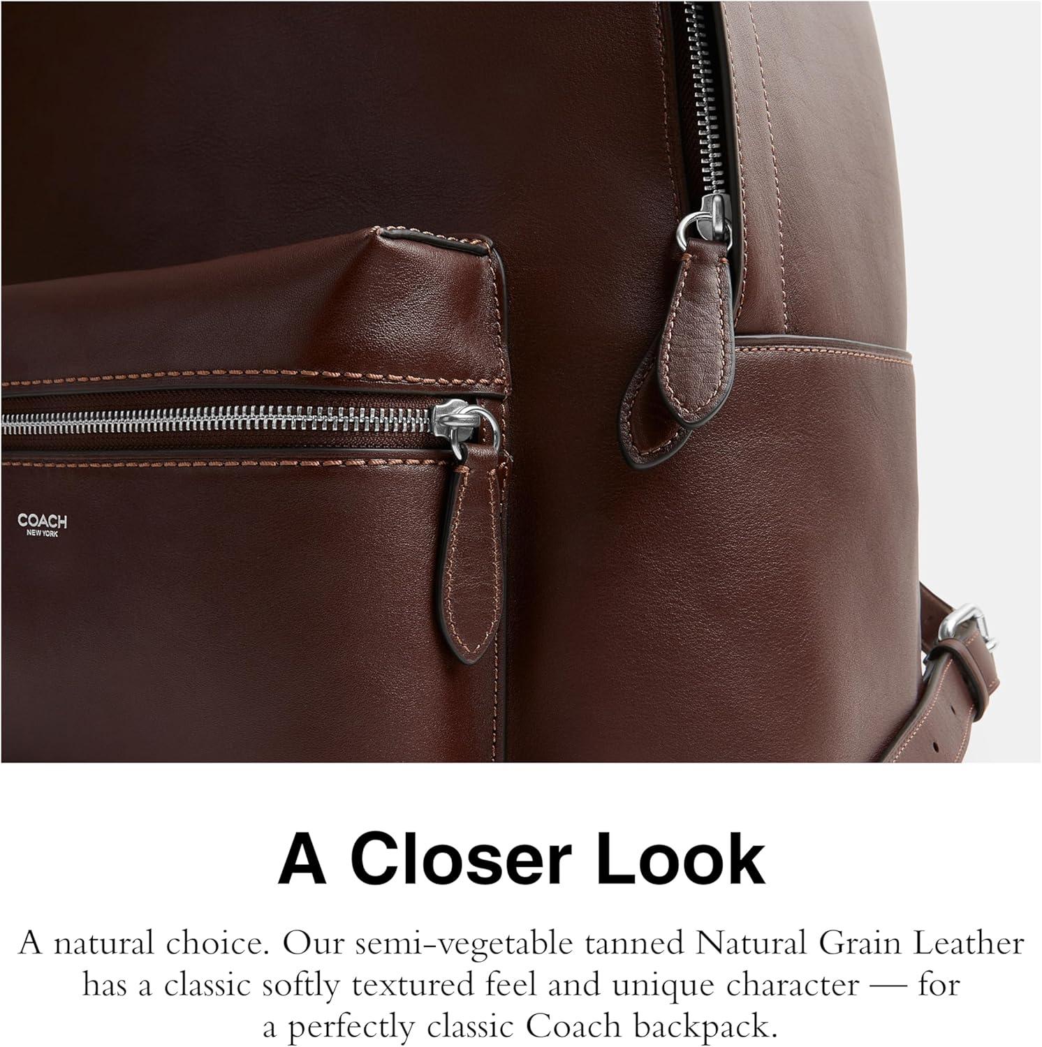 Natural Grain Leather: A Natural Choice. Our semi-vegetable tanned Natural Grain Leather has a classic softly textured feel and unique character – for a perfectly classic Coach backpack for men