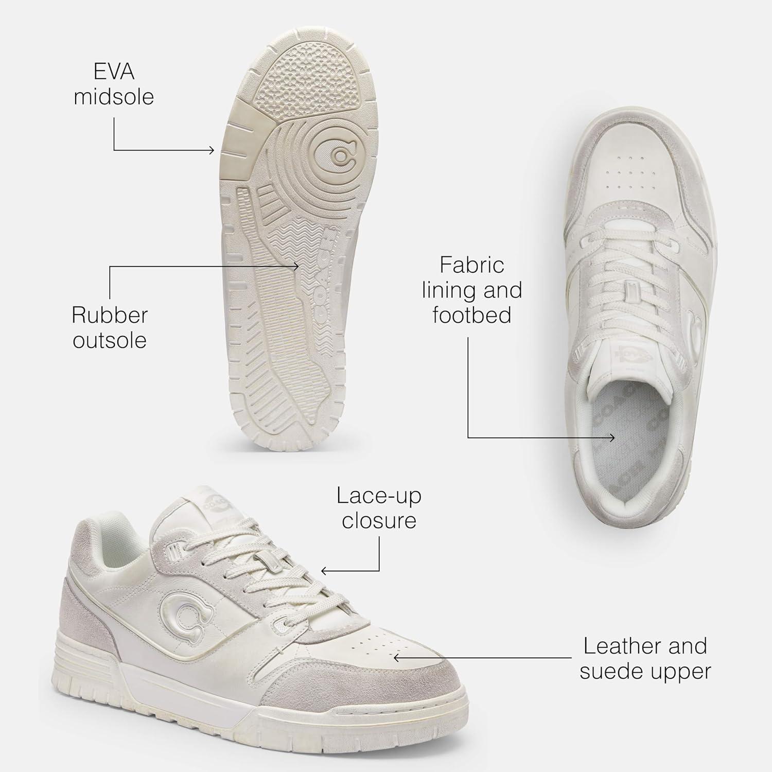 Our Coach SoHo Sneaker is inspired by the courageous free spirit of our hometown New York City and built to keep pace with life on the go. Crafted of smooth leather, it features a midsole that contains at least 28% bio-based content, created through a process that uses renewable sources in place of fossil-based. The comfortable style is finished with a grooved rubber outsole detailed with a map of Manhattan.