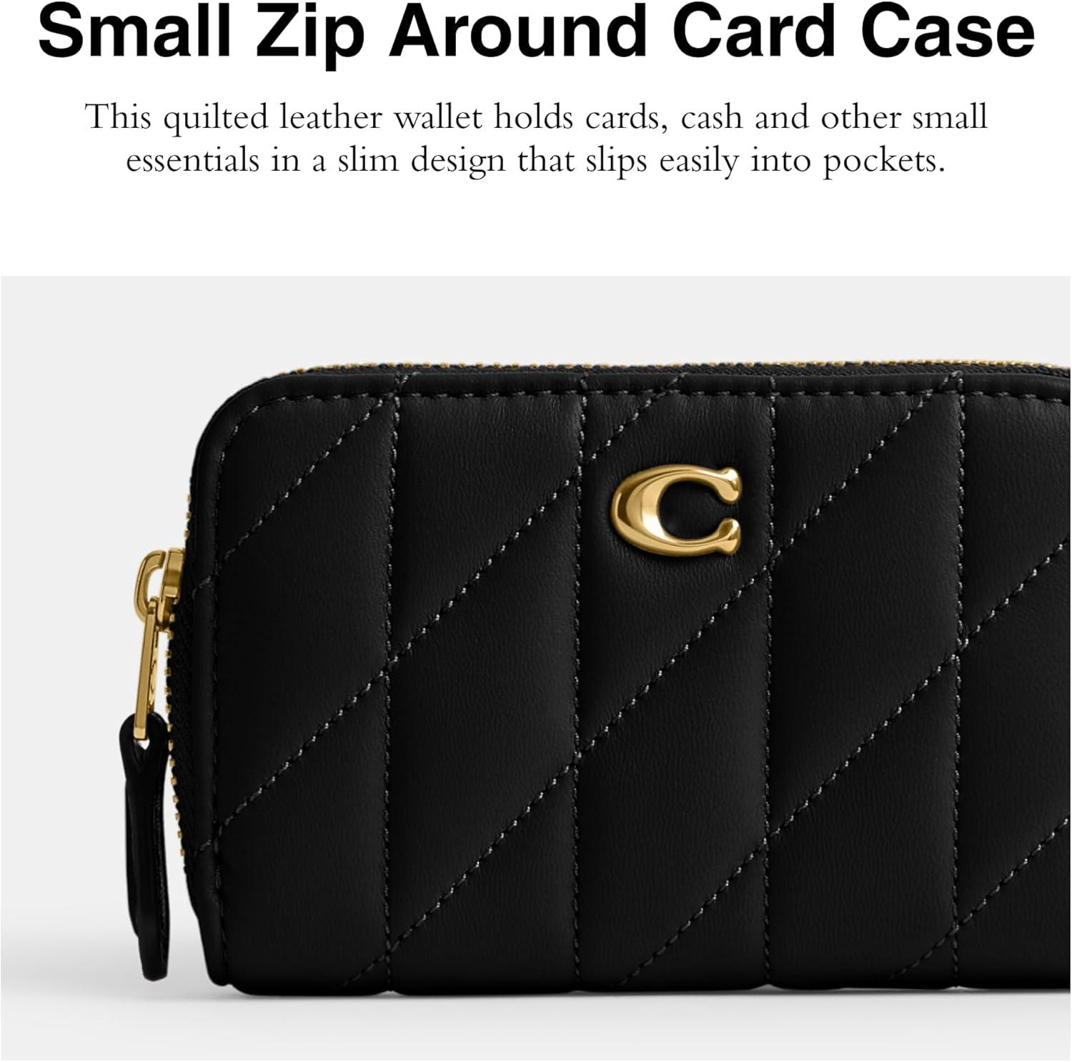 Coach Quilted Pillow Leather Small Zip Around Card Case(B4/Black)