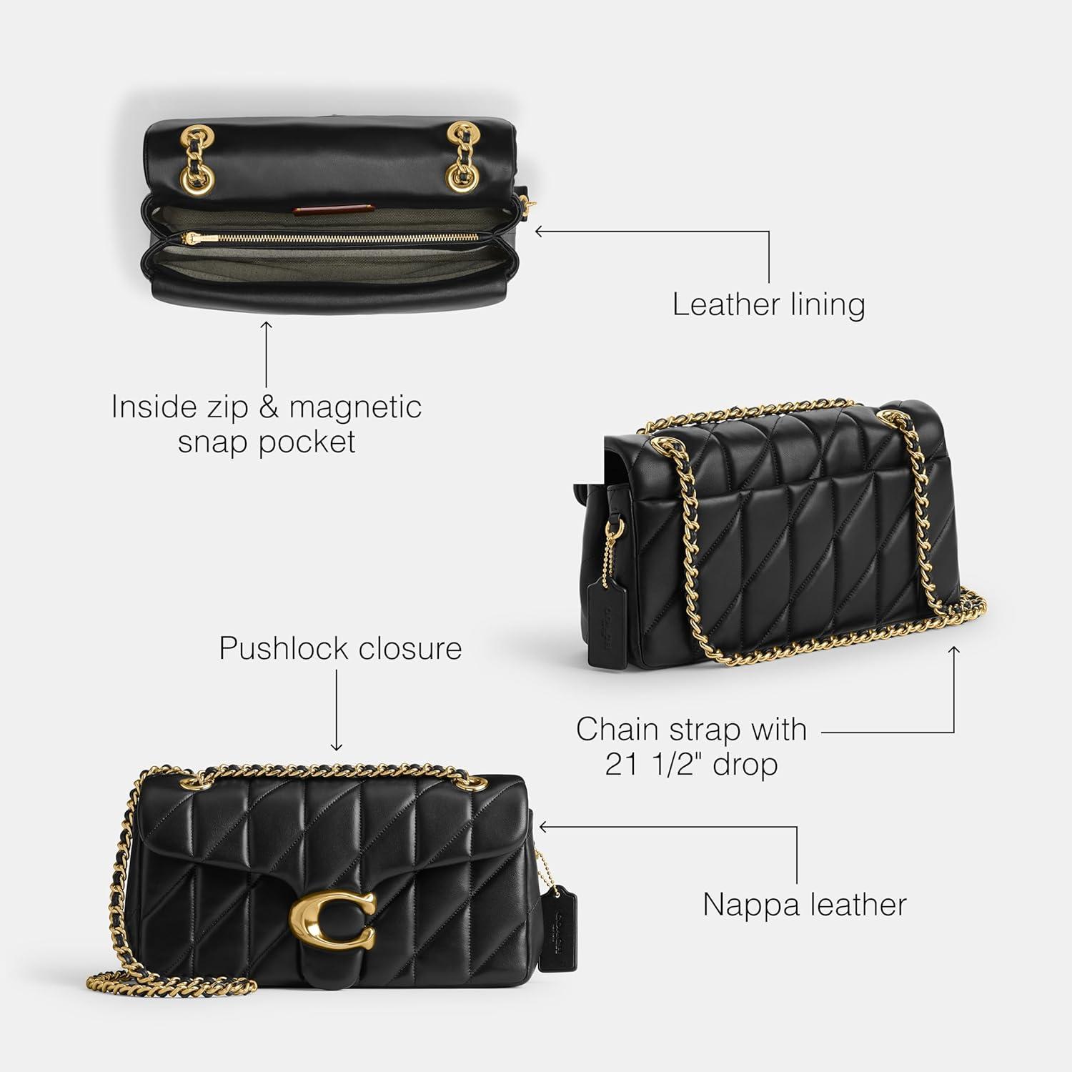 A modern take on an archival 1970s Coach design, this structured Coach Tabby bag is crafted of quilted nappa leather & finished with a pushlock closure and magnetic snap pockets for easy access to essentials. Puff pieces. Supple leather undergoes a time-intensive sewing technique to create a pillowy quilted effect – for a timeless designer handbag for women.