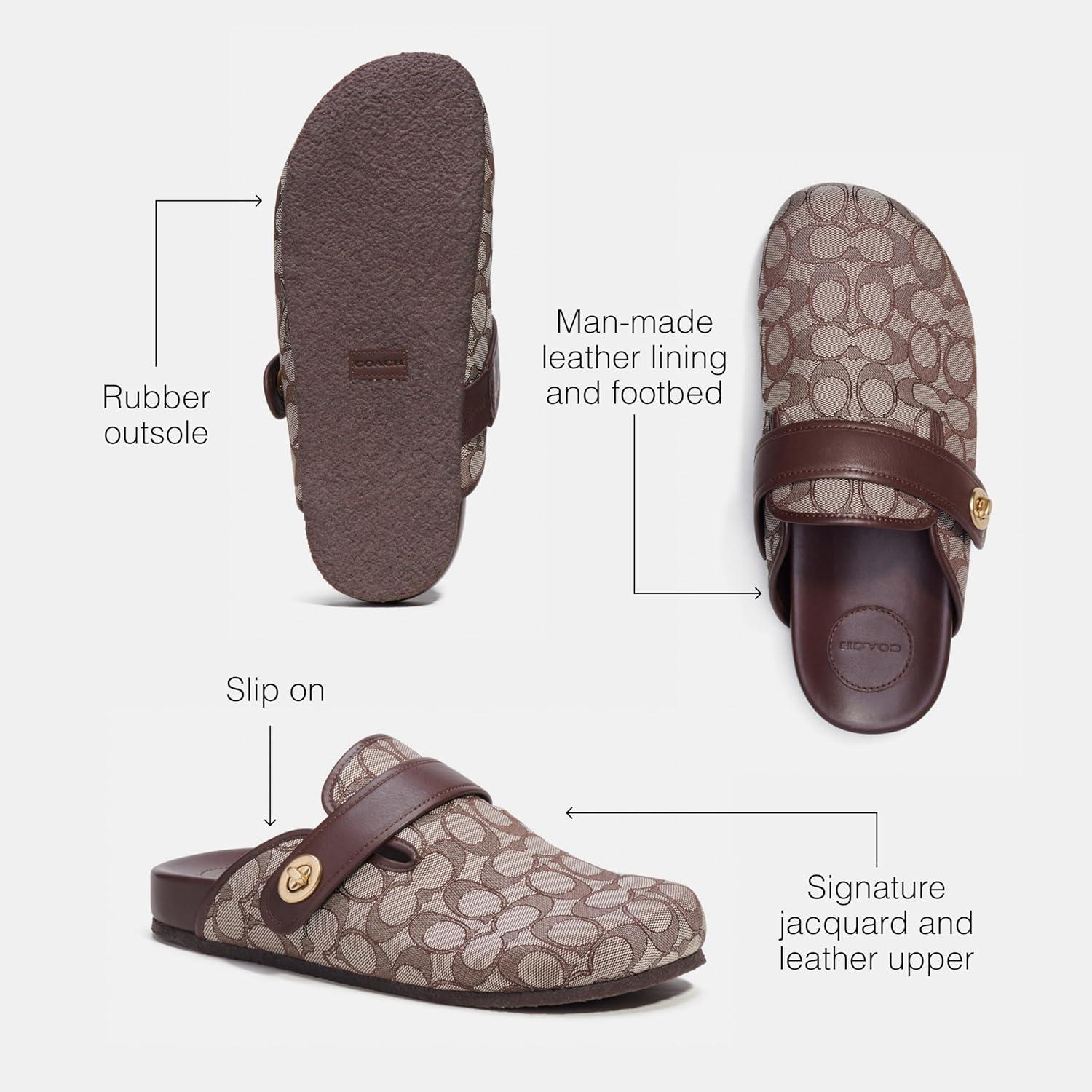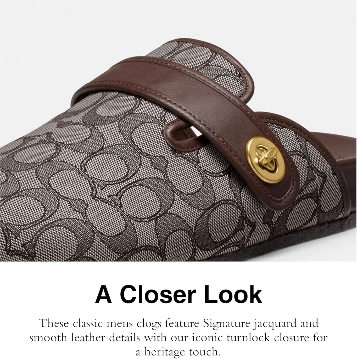 A comfortable choice for around the house or out on the town, these classic mens clogs feature signature jacquard and smooth leather details with our iconic turnlock closure for a heritage touch. These relaxed men's slides are finished with a contoured footbed and a durable rubber outsole for all day comfort.