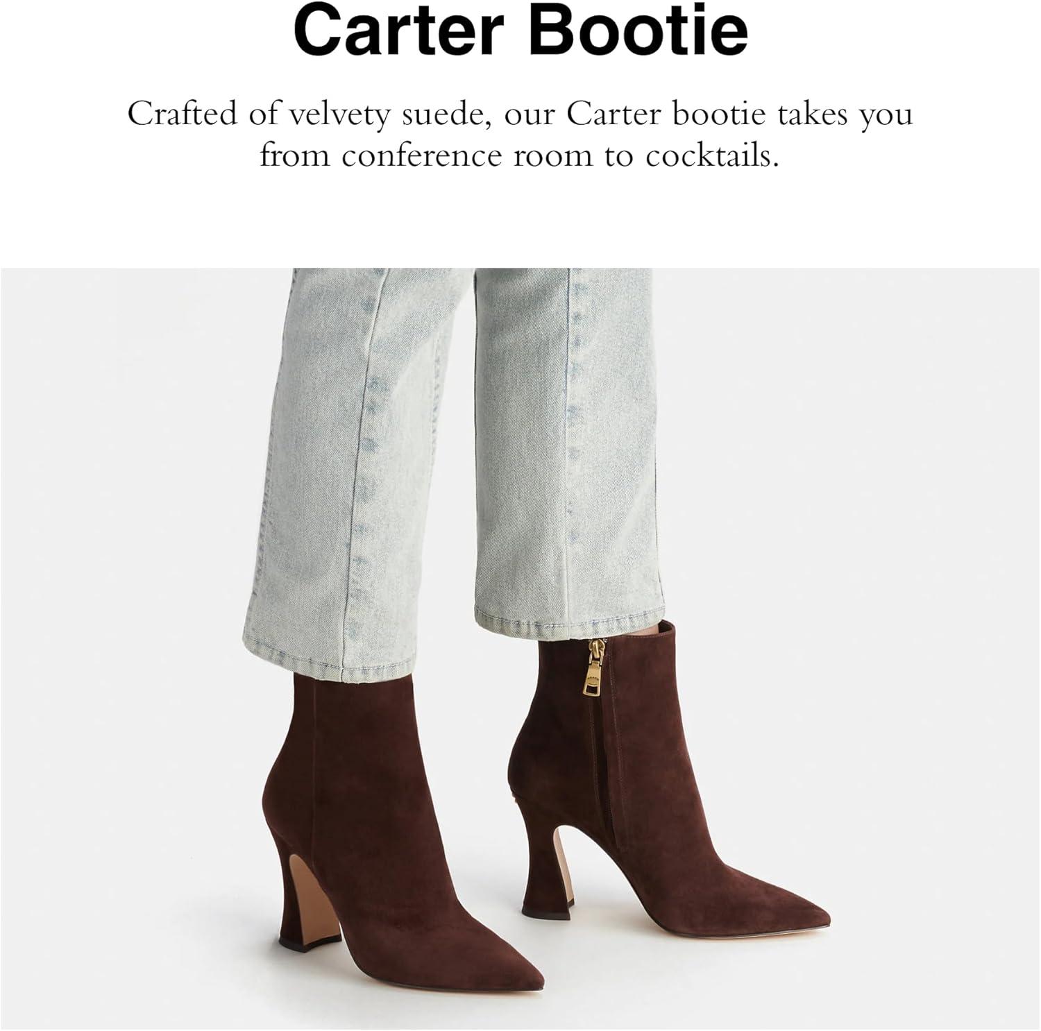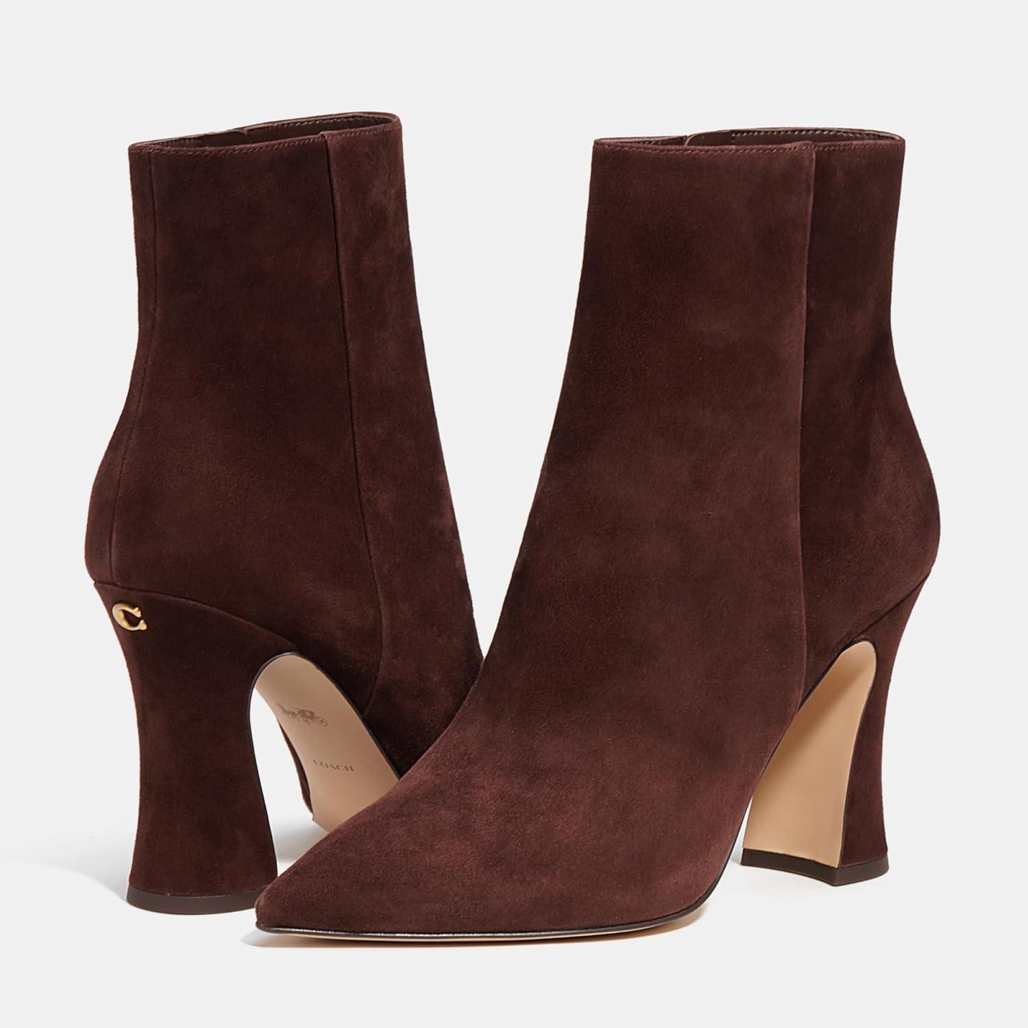 Fall fashion has never looked better than with the Carter, a pair of perfectly chic, pointed toe ankle boots. Crafted of velvety suede, these Coach shoes are finished with our Signature hardware for a heritage touch and a sculpted 3 1/4″ heel