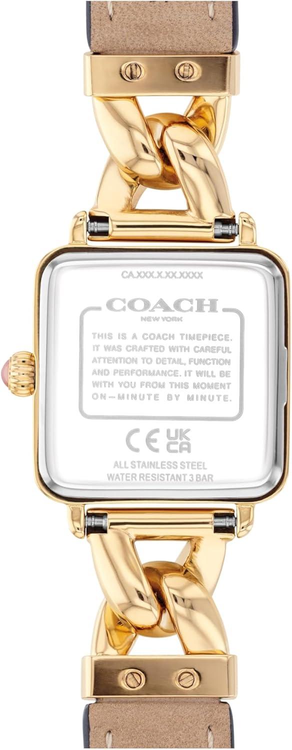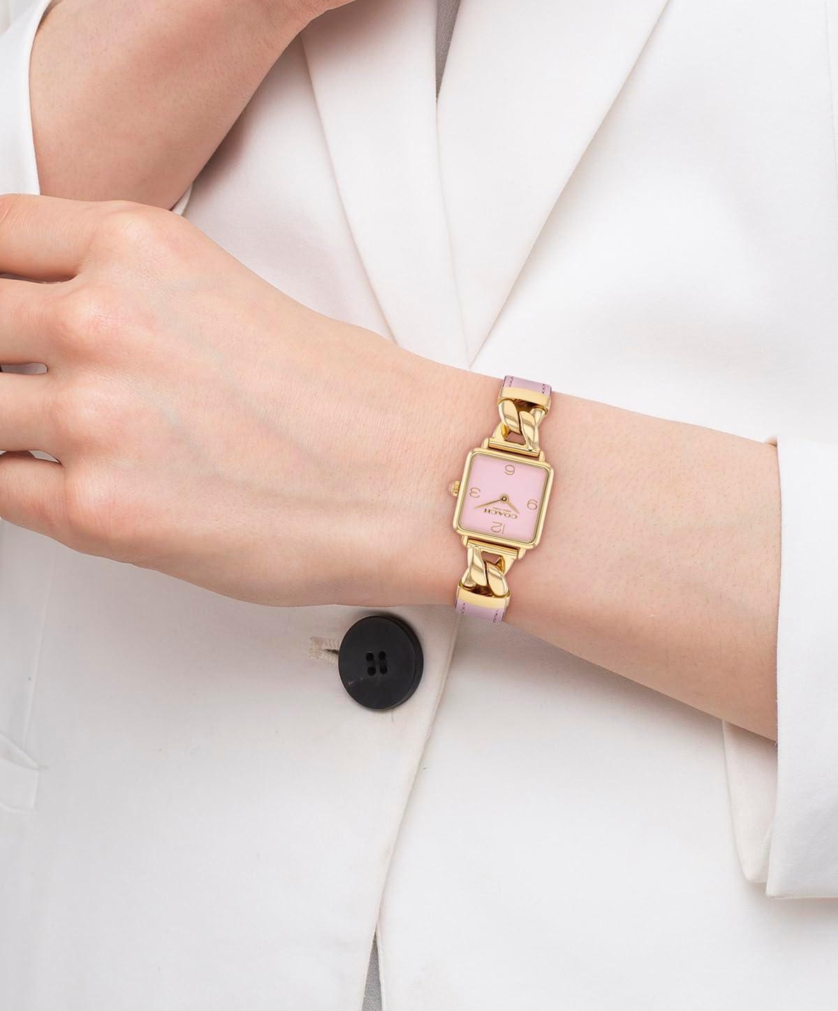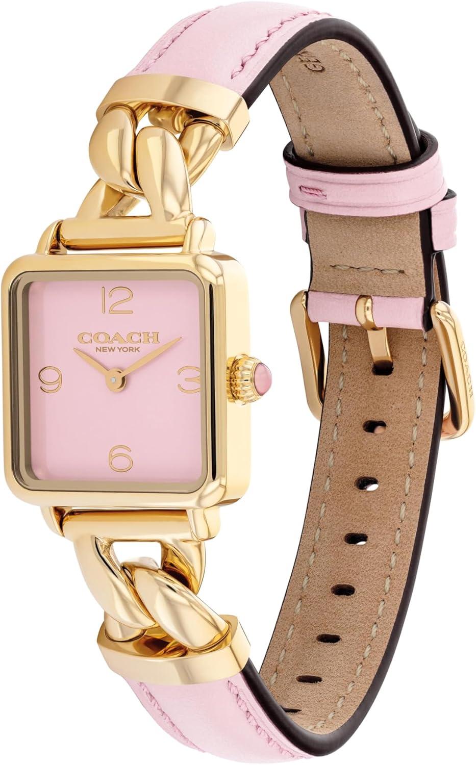 Coach Women's Cass 2H Quartz Watch, Square Case, Genuine Leather Strap, Contemporary Design for Her(Blush)