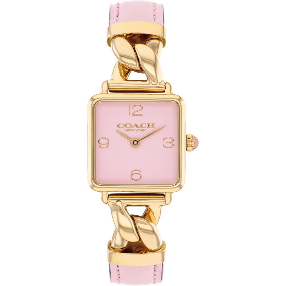 Coach Women’s Cass 2H Quartz Watch, Square Case, Genuine Leather Strap, Contemporary Design for Her(Blush)