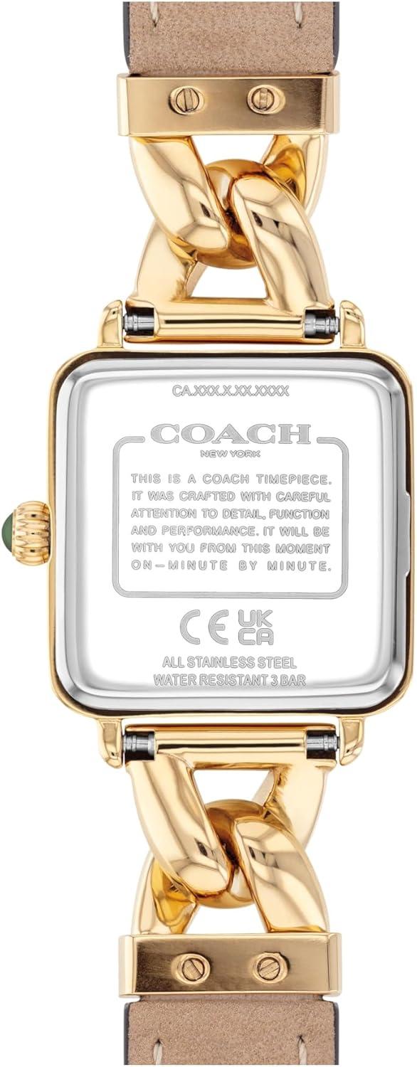 Coach Women’s Cass 2H Quartz Watch, Square Case, Genuine Leather Strap, Contemporary Design for Her(Saddle)