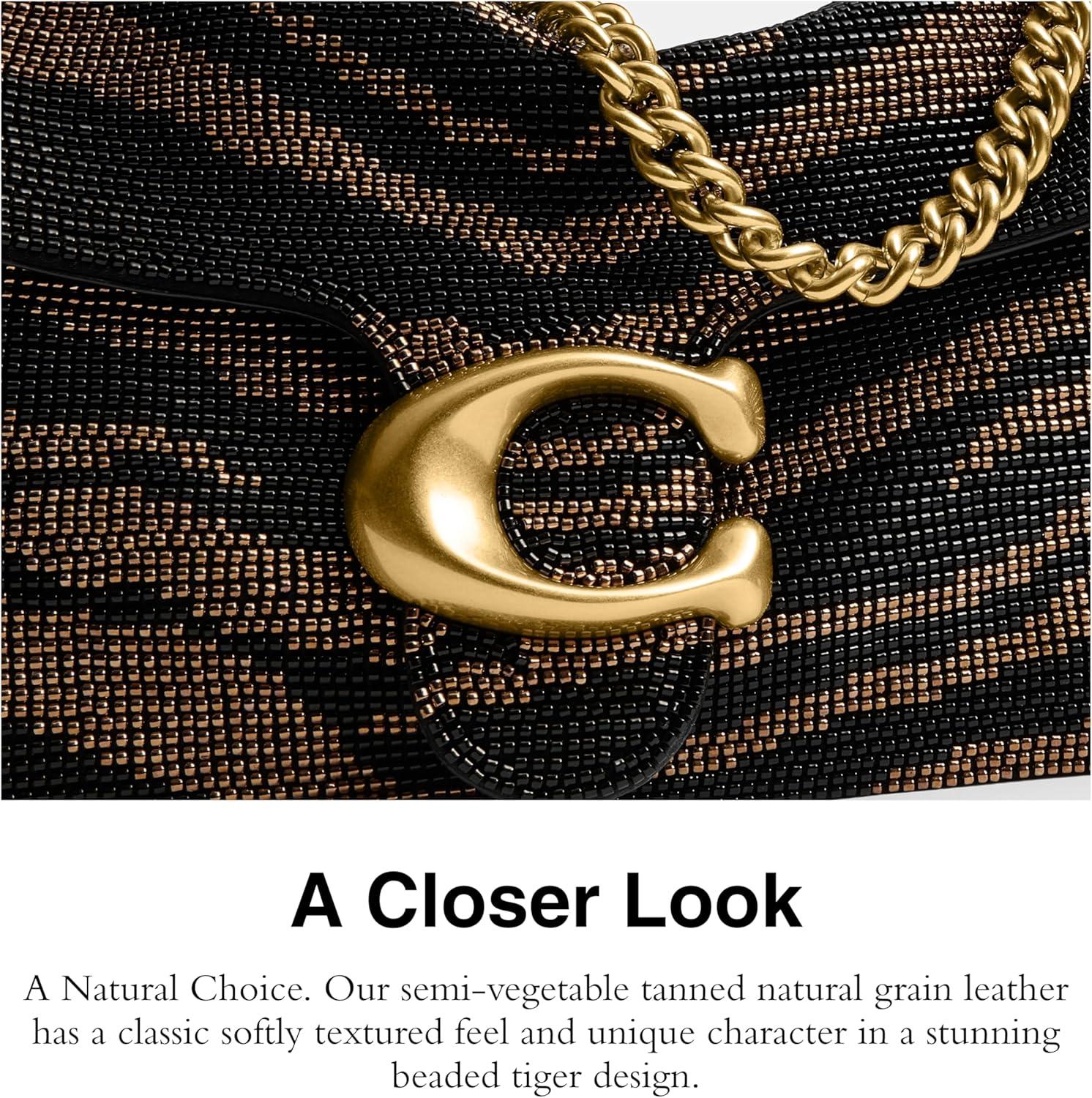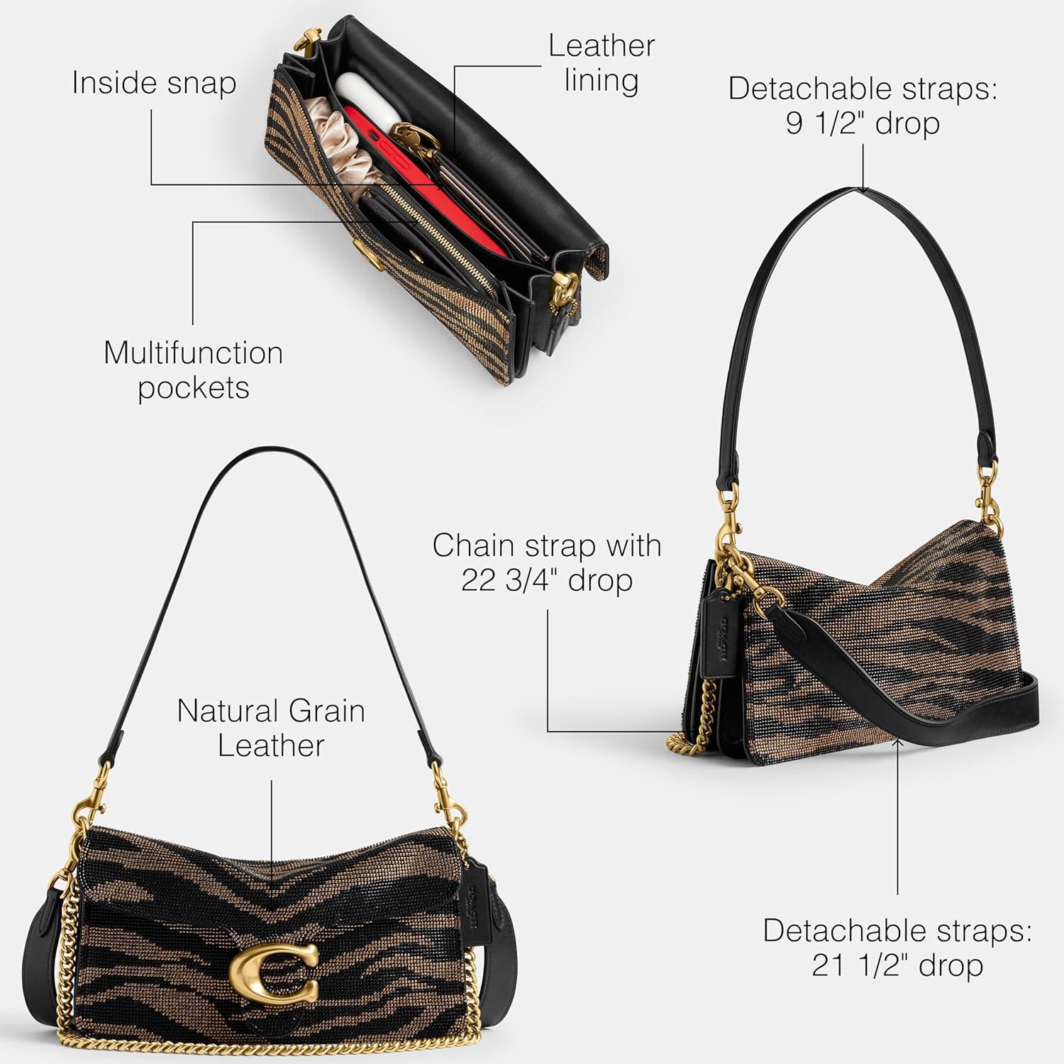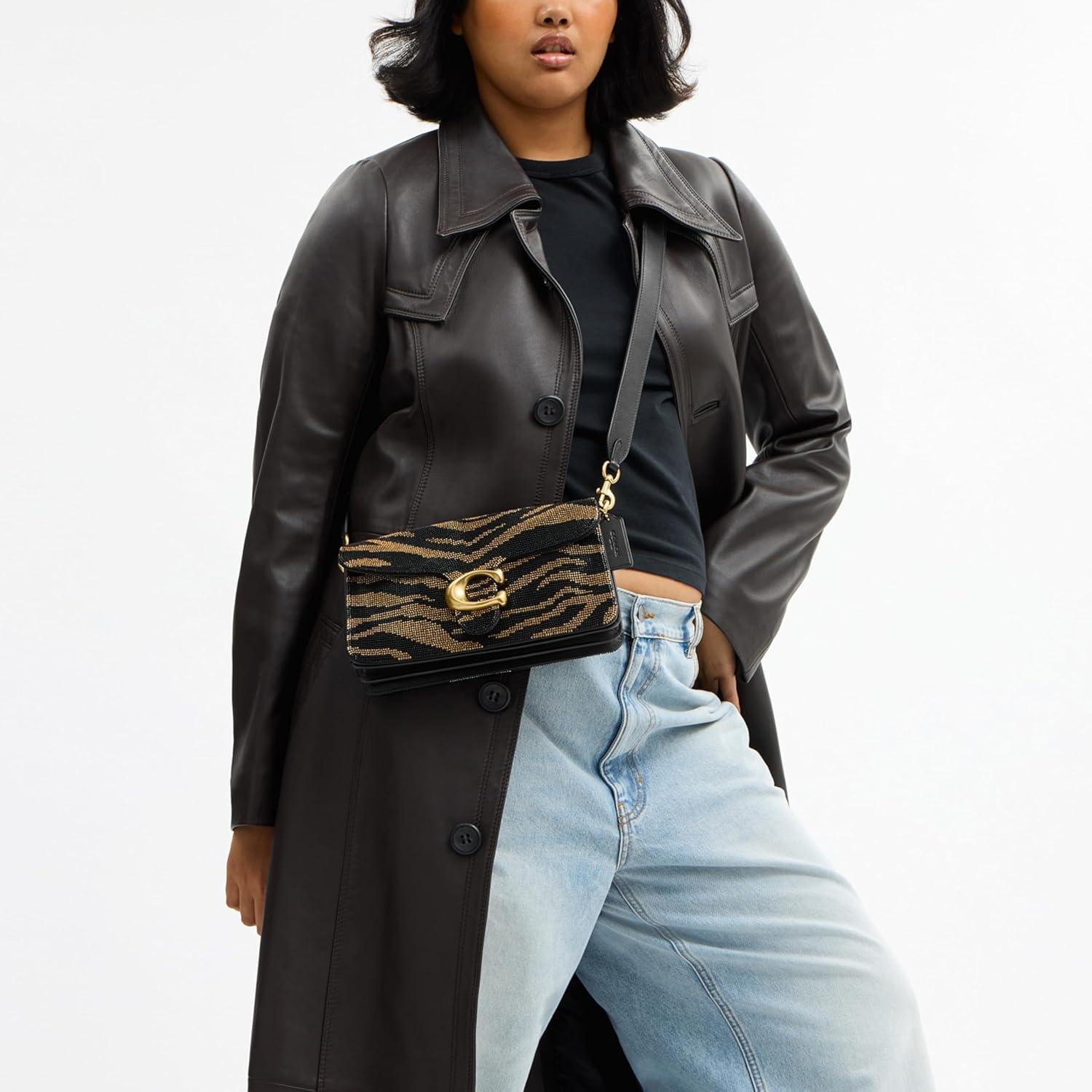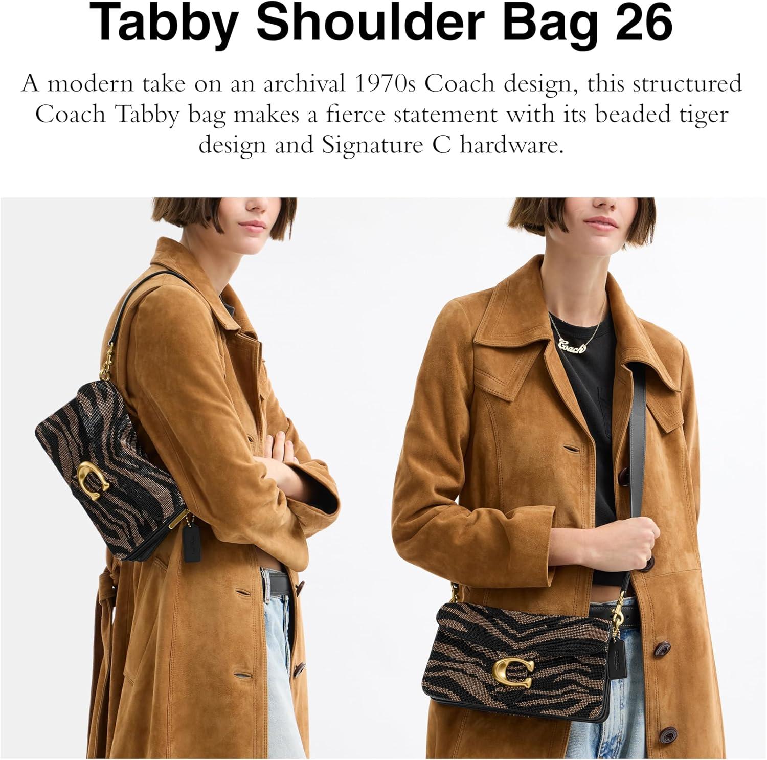 COACH Women’s Crystal Denim Tabby Shoulder Bag(Black Tiger)