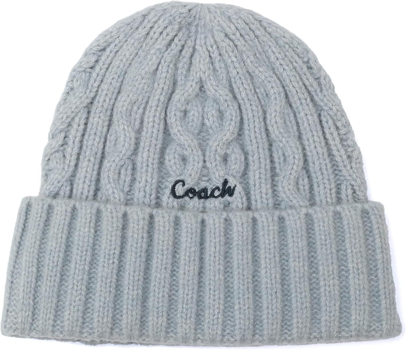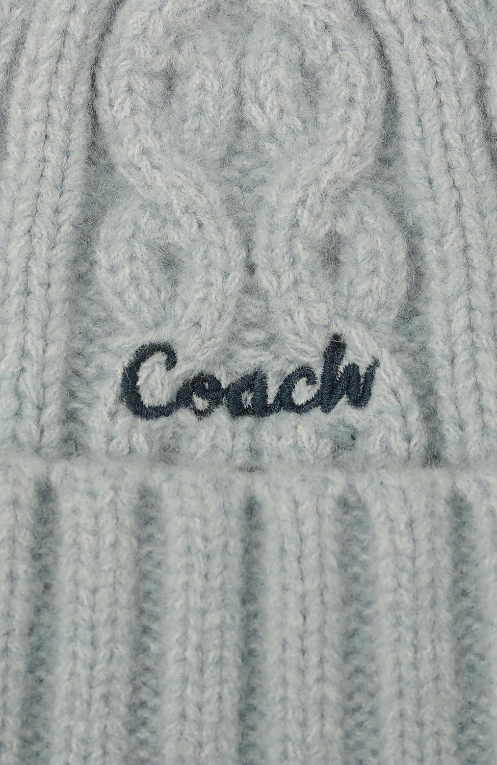 Coach Womens Embroidered Cable Knit Beanie(Light Blue)