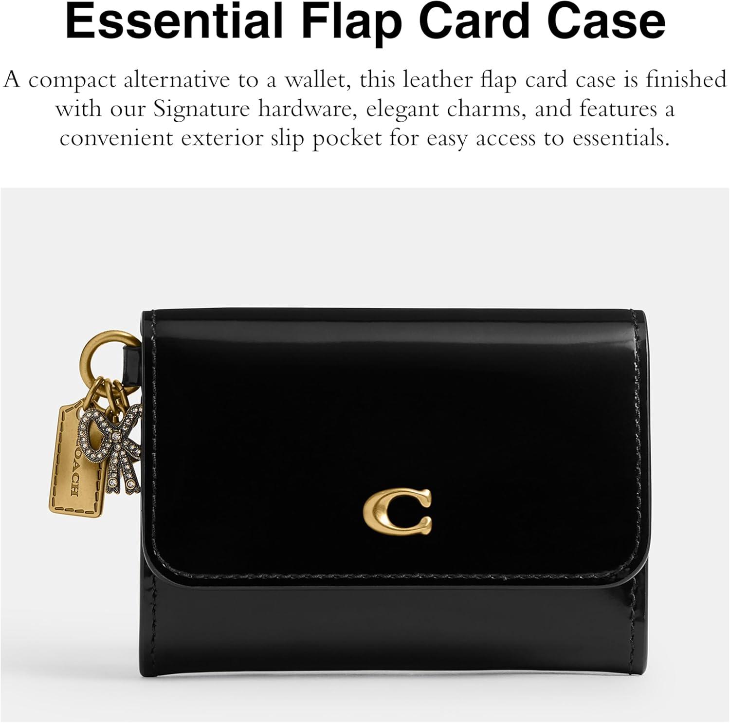 Our Essential Flap Card Case wallet is crafted of refined calf leather and features 4 credit card slots, an outside open pocket a snap closure. Finished with our Signature hardware, this compact womens wallet holds cards, cash, ID and earbuds with an outside open pocket for easy access to essentials.