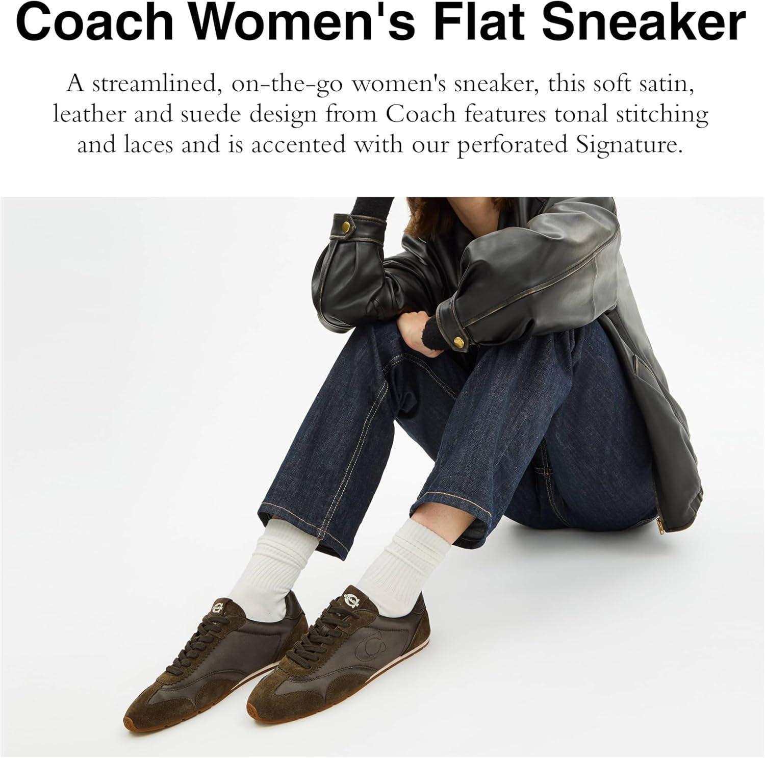 A streamlined, on-the-go women's sneaker, this soft satin, leather and suede design from Coach features tonal stitching and laces and is accented with our perforated Signature for a Coach heritage touch. Satin, suede and leather upper, man-made leather lining and footbed, rubber outsole, lace-up closure