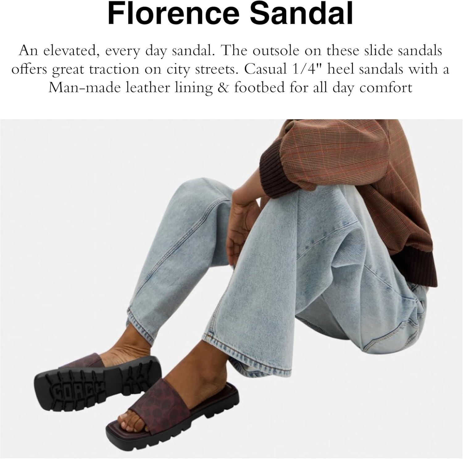 Coach Women’s Florence Sandal in Signature Coated Canvas Flat(Black Currant)
