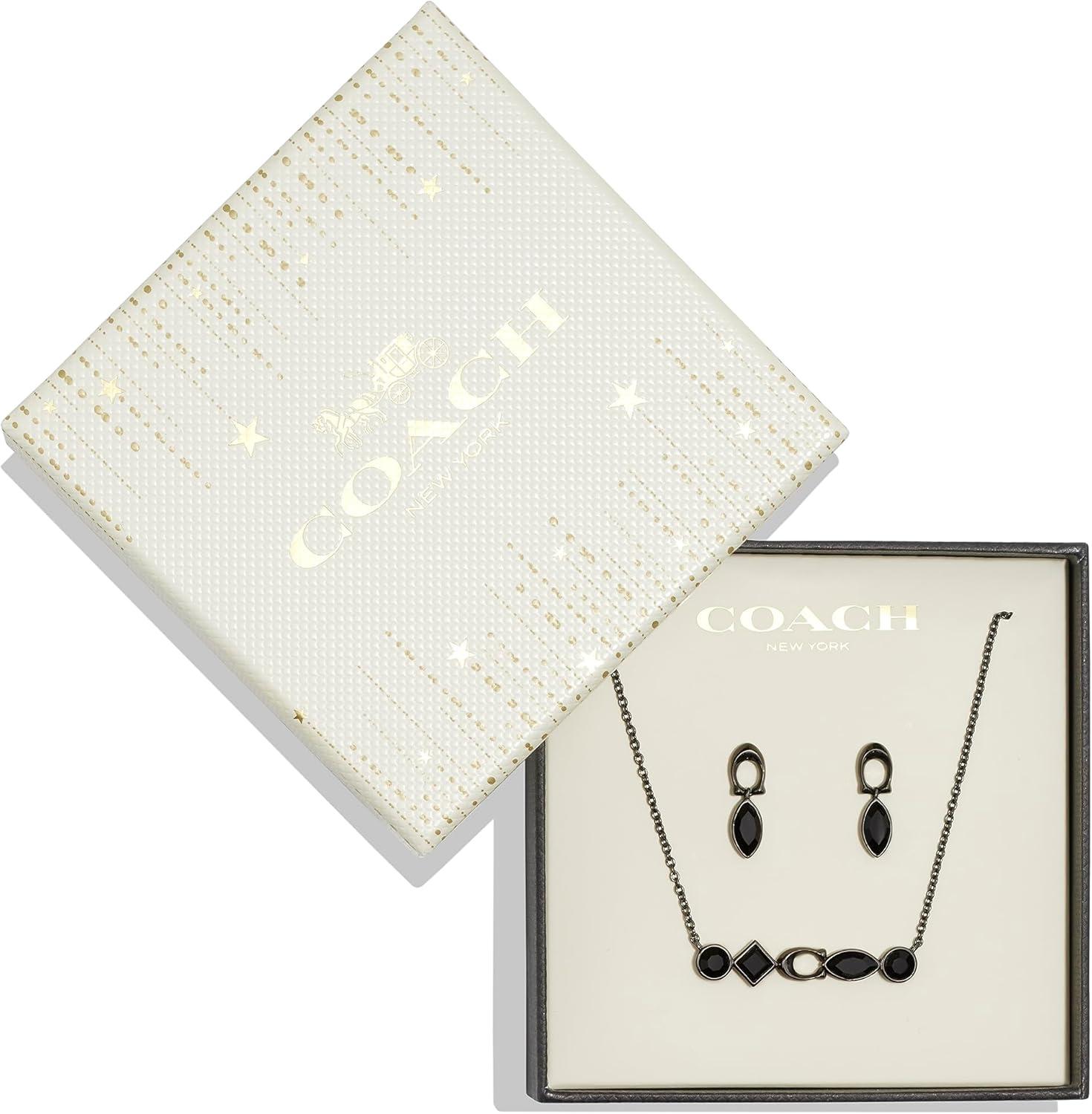 COACH Women’s Gemstone Earring and Necklace Set(BLACK)