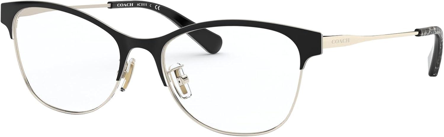 COACH Women's Hc5111 Cat Eye Prescription Eyewear Frames(Black/Light Gold/Demo Lens)