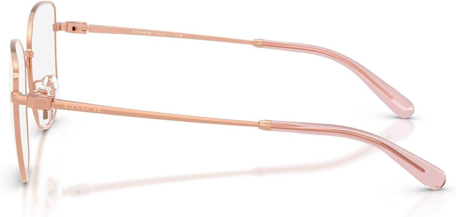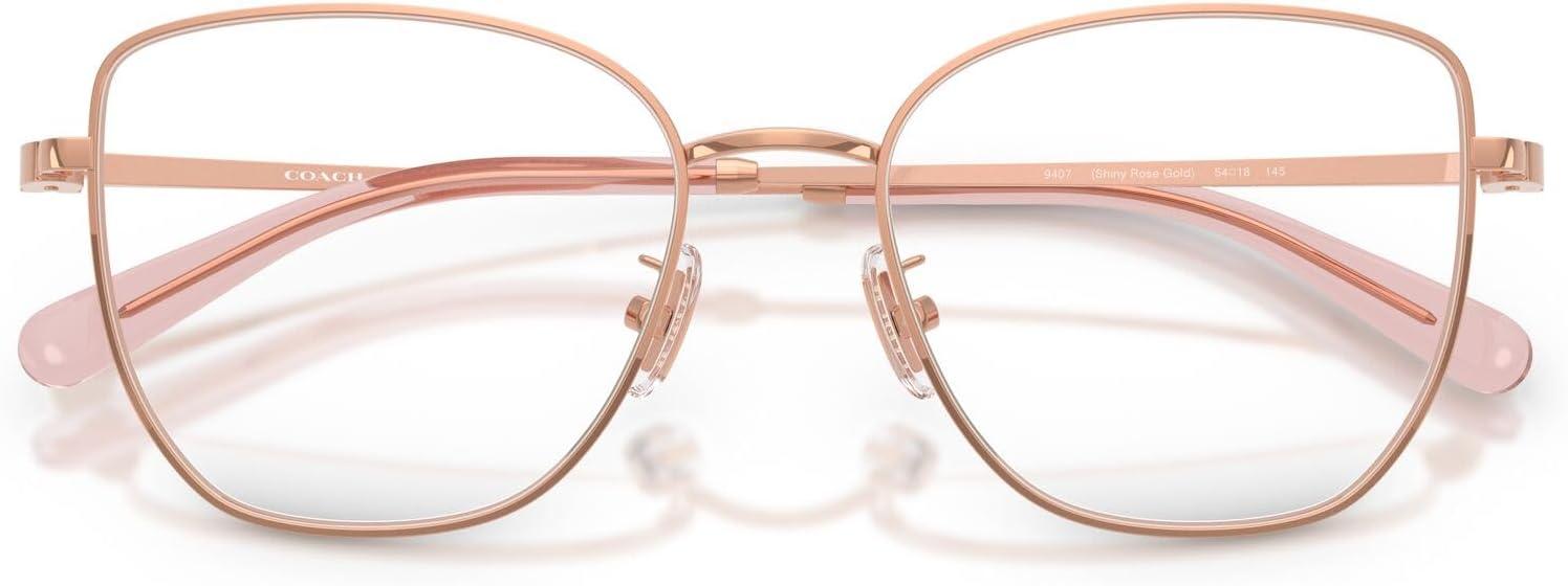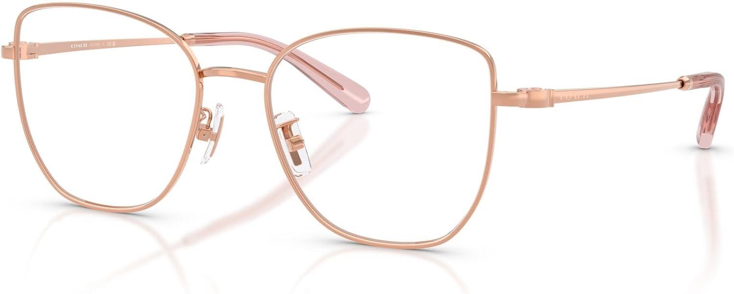 The Coach HC5197D eyeglass frames feature an elegant butterfly silhouette from Coach's Functional C collection. This sophisticated design showcases an oversized geometric silhouette with integrated hinge color details that create a distinctive luxury aesthetic. Available in premium metal finishes including shiny silver, shiny light gold, shiny black, and shiny rose gold. The butterfly shape offers flattering proportions while the integrated hinge design ensures exceptional quality and comfort. Perfect for the modern woman who appreciates bold design with refined elegance, these frames transition seamlessly from professional to social settings. These prescription-ready frames are designed to be fitted with your custom prescription lenses for clear vision. Each pair comes with a protective case and cleaning cloth to preserve your frames and maintain their pristine appearance. Coach eyeglass frames sold by authorized sellers, like Amazon.com, are eligible for all manufacturer warranties and guarantees. Click on the Coach link above the product title to shop the entire Coach sunglass and eyeglass assortment.
