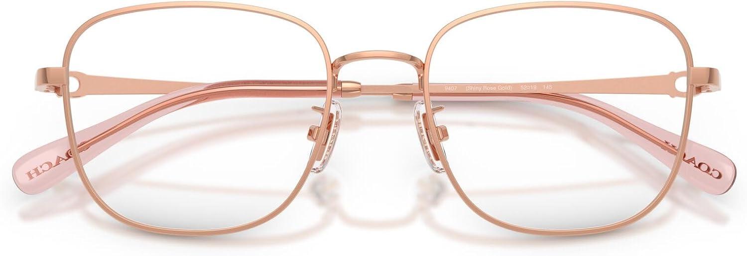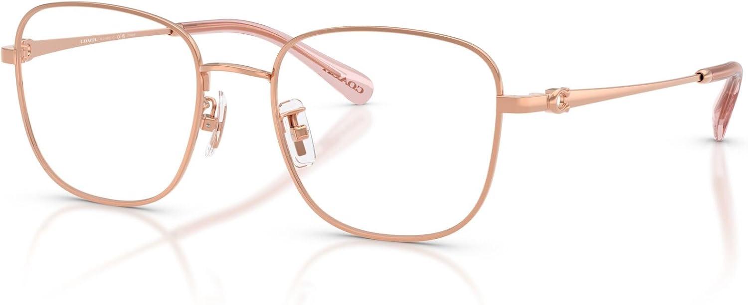 The Coach HC5198TD eyeglass frames feature an elegant square silhouette from Coach's Titanium Sculptural C collection. This sophisticated design showcases the new sleek C code detailing that creates a distinctive luxury aesthetic. Available in premium metal finishes including shiny silver, shiny light gold, shiny black, and shiny rose gold. The square shape offers flattering proportions while the sculptural design ensures exceptional quality and lightweight comfort. Perfect for the modern woman who appreciates refined design with timeless elegance, these frames transition seamlessly from professional to social settings. These prescription-ready frames are designed to be fitted with your custom prescription lenses for clear vision. Each pair comes with a protective case and cleaning cloth to preserve your frames and maintain their pristine appearance. Coach eyeglass frames sold by authorized sellers, like Amazon.com, are eligible for all manufacturer warranties and guarantees. Click on the Coach link above the product title to shop the entire Coach sunglass and eyeglass assortment.