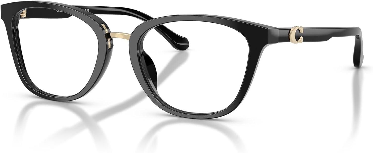 The Coach HC6272F Universal Fit eyeglass frames feature a glamorous square silhouette from Coach's Maxi C collection. This bold design showcases the large iconic C logo at the temple with temple evolution details that create a distinctive luxury statement. Available in sophisticated colorways including black, dark tortoise, transparent brown, and milky merlot that offer both classic and contemporary styling options. Featuring Universal Fit with a narrower bridge and longer, more curved nose pads that increase grip on the nose while reducing the space between the frame and your cheekbones for enhanced comfort and optimal positioning. The glam square shape provides striking proportions while the quality construction ensures exceptional durability and all-day wearability. Perfect for the modern woman who appreciates bold design with refined elegance, these frames make a confident statement in both professional and social settings. These prescription-ready frames are designed to be fitted with your custom prescription lenses for clear vision. Each pair comes with a protective case and cleaning cloth to preserve your frames and maintain their pristine appearance. Coach eyeglass frames sold by authorized sellers, like Amazon.com, are eligible for all manufacturer warranties and guarantees. Click on the Coach link above the product title to shop the entire Coach sunglass and eyeglass assortment.