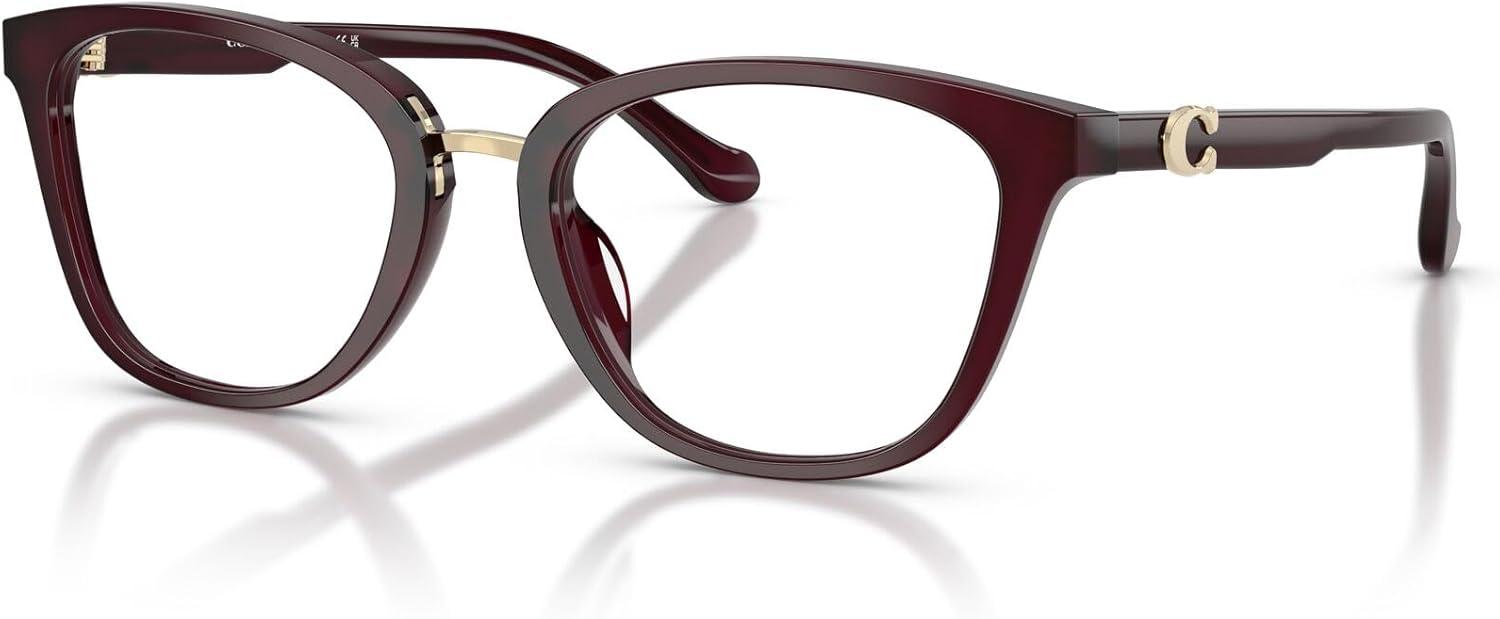 The Coach HC6272F Universal Fit eyeglass frames feature a glamorous square silhouette from Coach's Maxi C collection. This bold design showcases the large iconic C logo at the temple with temple evolution details that create a distinctive luxury statement. Available in sophisticated colorways including black, dark tortoise, transparent brown, and milky merlot that offer both classic and contemporary styling options. Featuring Universal Fit with a narrower bridge and longer, more curved nose pads that increase grip on the nose while reducing the space between the frame and your cheekbones for enhanced comfort and optimal positioning. The glam square shape provides striking proportions while the quality construction ensures exceptional durability and all-day wearability. Perfect for the modern woman who appreciates bold design with refined elegance, these frames make a confident statement in both professional and social settings. These prescription-ready frames are designed to be fitted with your custom prescription lenses for clear vision. Each pair comes with a protective case and cleaning cloth to preserve your frames and maintain their pristine appearance. Coach eyeglass frames sold by authorized sellers, like Amazon.com, are eligible for all manufacturer warranties and guarantees. Click on the Coach link above the product title to shop the entire Coach sunglass and eyeglass assortment.