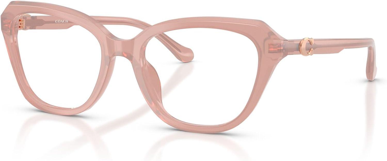 The Coach HC6273U Universal Fit eyeglass frames feature a glamorous hexagonal silhouette from Coach's Maxi C collection. This bold design showcases the large iconic C logo at the temple. Available in sophisticated colorways including black, dark tortoise, milky hazelnut, milky merlot, and milky buff that offer both classic and contemporary styling options. Featuring Universal Fit with a narrower bridge and longer, more curved nose pads that increase grip on the nose while reducing the space between the frame and your cheekbones for enhanced comfort and optimal positioning. The glam hexagonal shape provides striking proportions while the quality construction ensures exceptional durability and all-day wearability. Perfect for the modern woman who appreciates bold design with refined elegance, these frames make a confident statement in both professional and social settings. These prescription-ready frames are designed to be fitted with your custom prescription lenses for clear vision. Each pair comes with a protective case and cleaning cloth to preserve your frames and maintain their pristine appearance. Coach eyeglass frames sold by authorized sellers, like Amazon.com, are eligible for all manufacturer warranties and guarantees. Click on the Coach link above the product title to shop the entire Coach sunglass and eyeglass assortment.