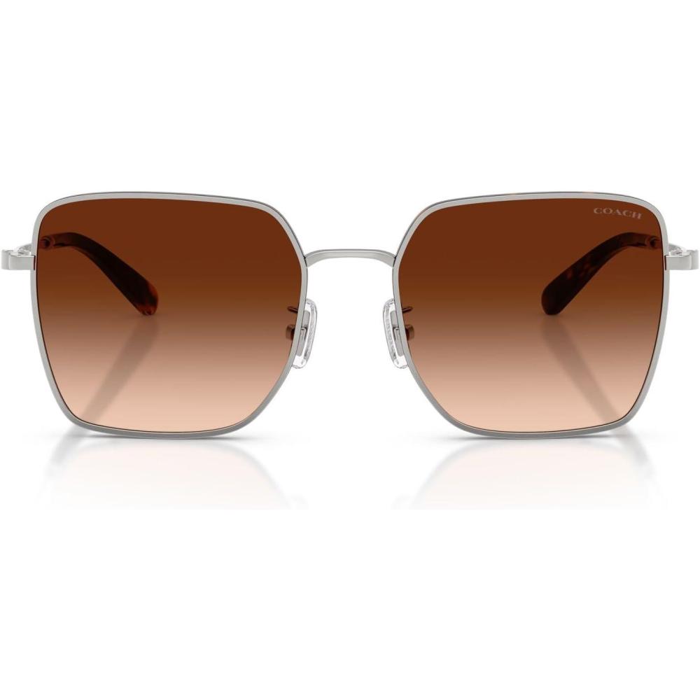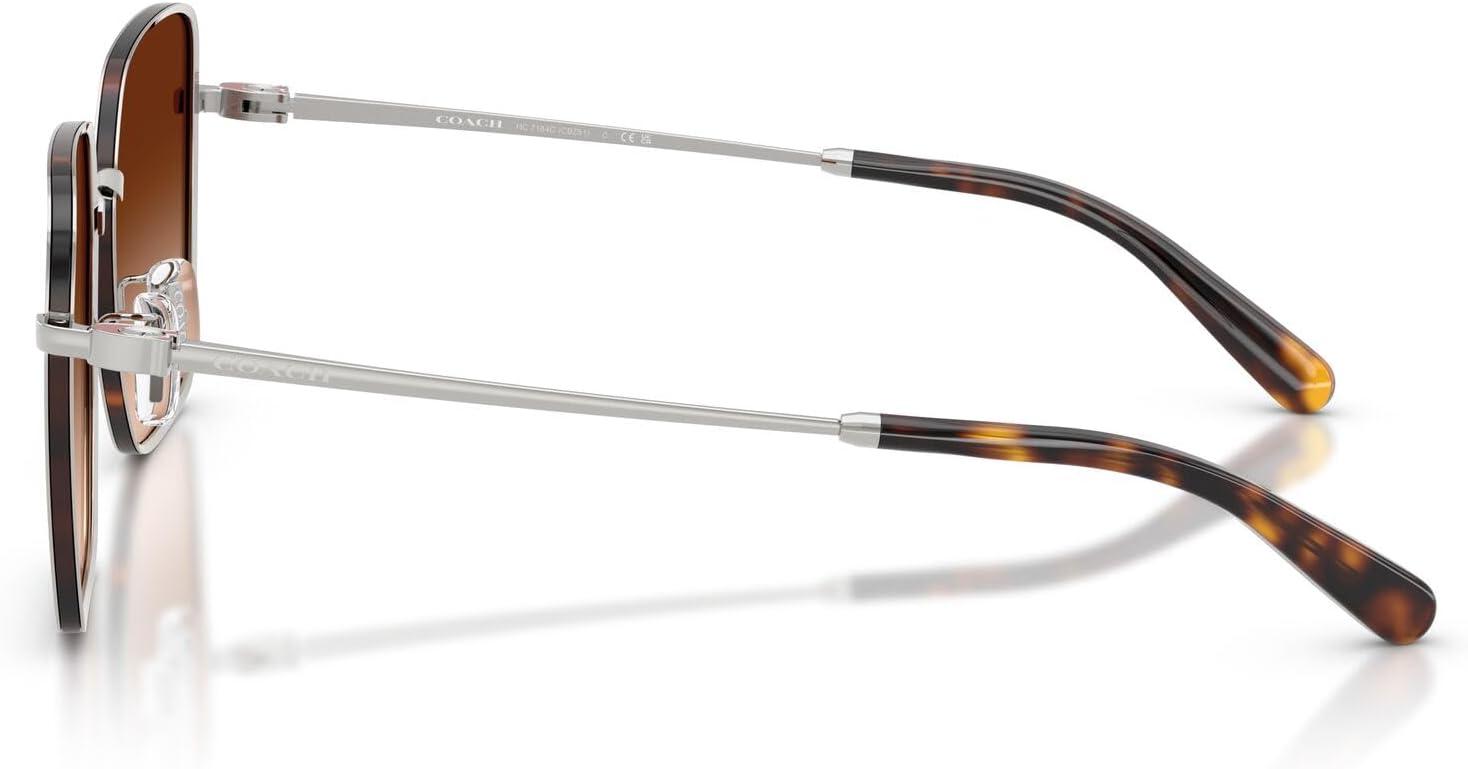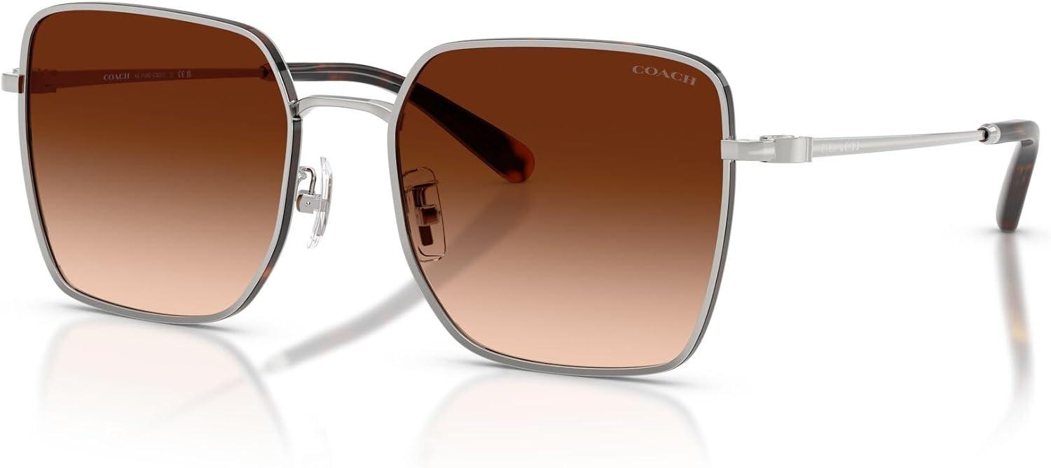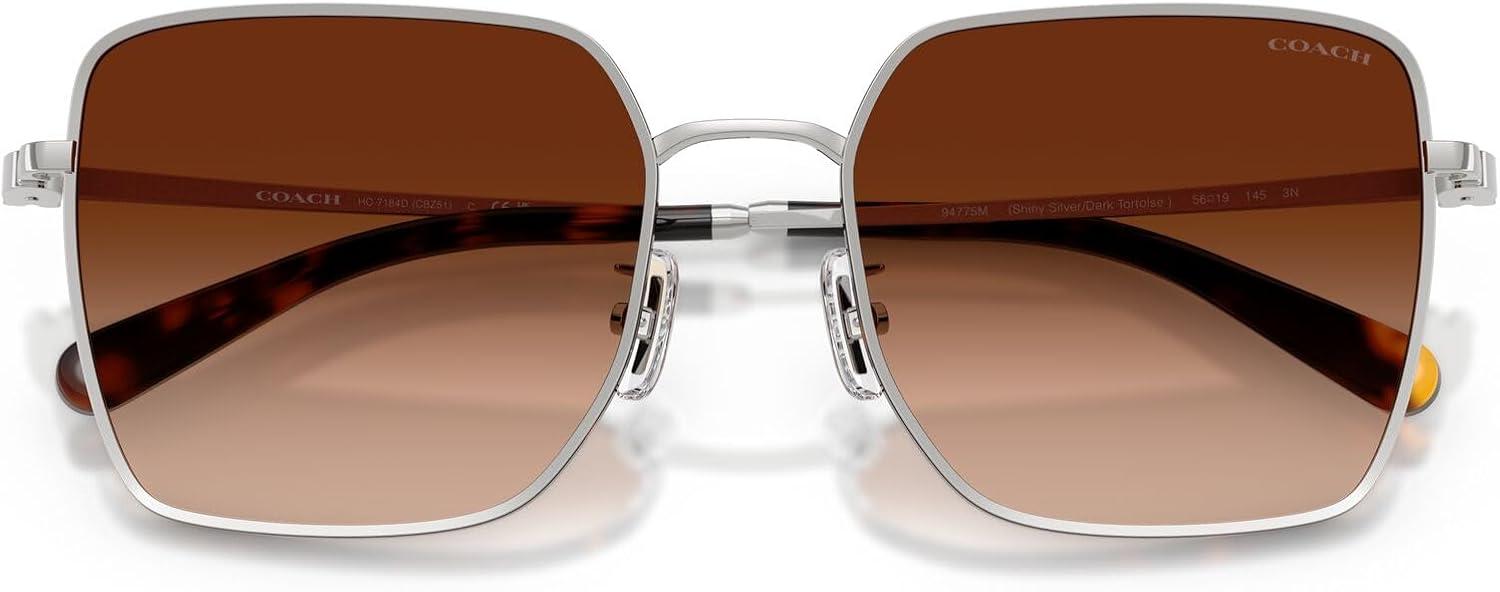 The Coach HC7184D sunglasses feature an oversized geometric square silhouette from Coach's Functional C collection. This sophisticated design showcases a flat Windsor rim and versatile frame and lens combinations including shiny black/dark grey with grey solid lenses, shiny light gold/grey with grey gradient lenses, shiny silver/dark tortoise with brown gradient lenses, and shiny rose gold/bordeaux with grey pink gradient lenses that offer both classic and modern styling options. The square shape provides flattering proportions while the functional construction ensures exceptional durability and all-day wearability. Perfect for the modern woman who appreciates bold design with practical detailing, these sunglasses transition effortlessly from travel and beach settings to everyday adventures. All lenses offer complete UV protection to shield your eyes from harmful rays during outdoor activities and daily wear. Each pair comes with a protective case and cleaning cloth to preserve your frames and maintain their pristine appearance. Coach sunglasses sold by authorized sellers, like Amazon.com, are eligible for all manufacturer warranties and guarantees. Click on the Coach link above the product title to shop the entire Coach sunglass and eyeglass assortment.