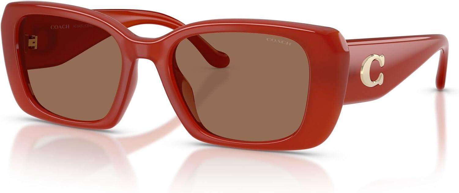 Coach Women’s Hc8435u Universal Fit Square Sunglasses(Milky Burnt Orange/Brown Solid)